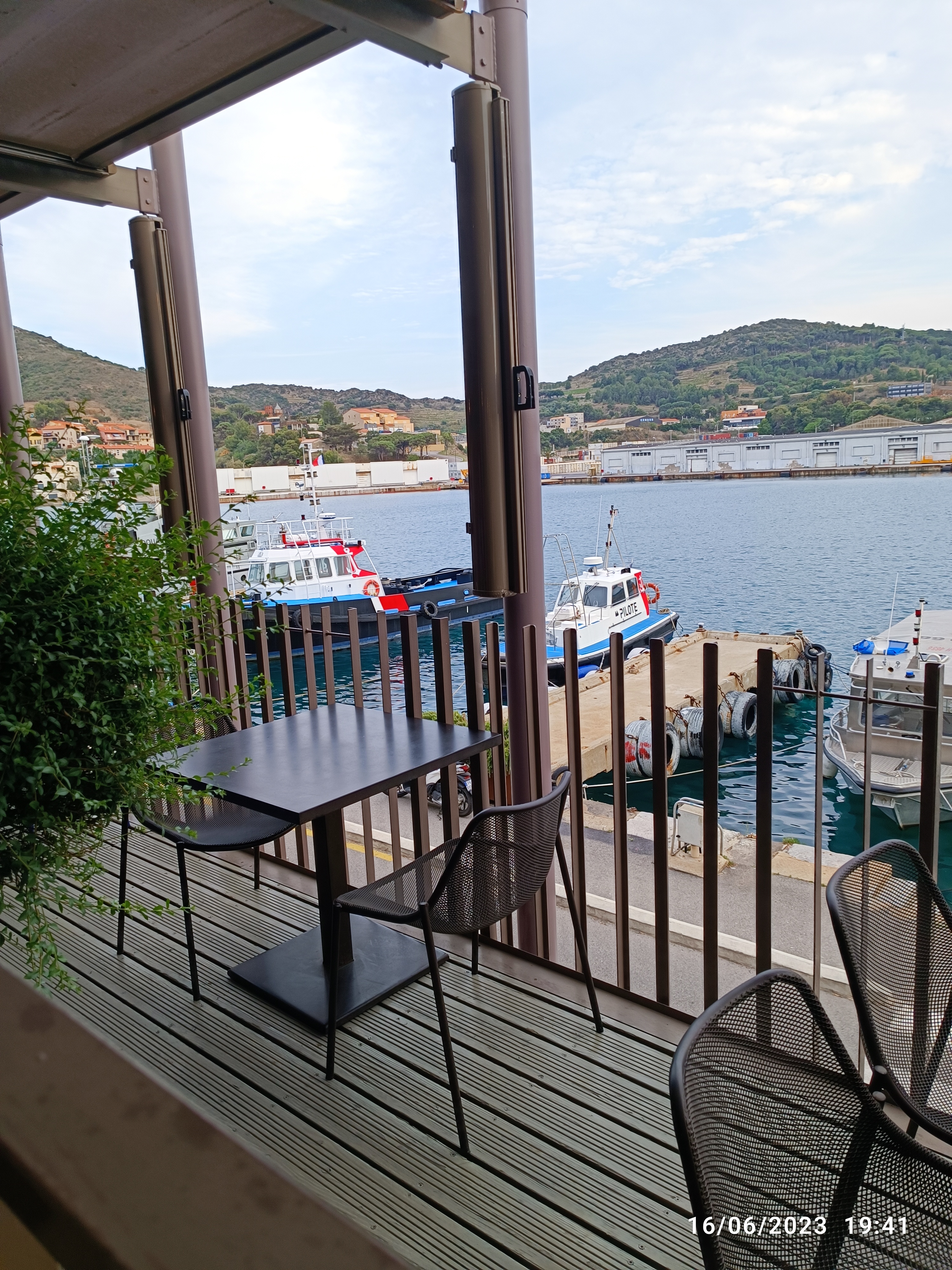 Bon bistrot avec vue plongeante sur le port maritime qui n'offre pas une vue de plaisance. voir plutôt La côte Vermeille
