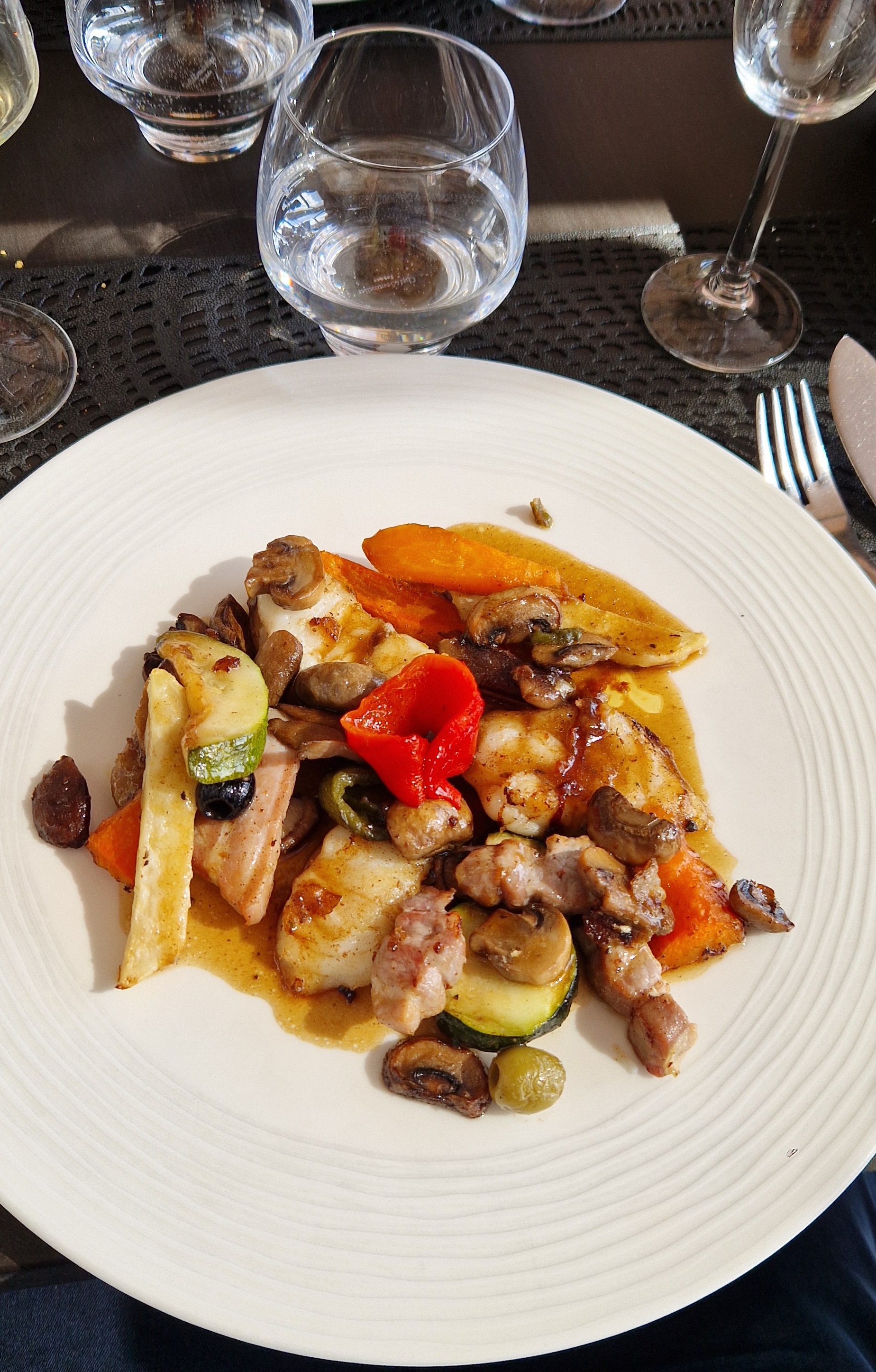 Excellente soirée ! Les poissons étaient délicieux et parfaitement cuits (poulpes), le service est discret et professionnel. Les desserts exquis et manger dans ce cadre idyllique est très plaisant !