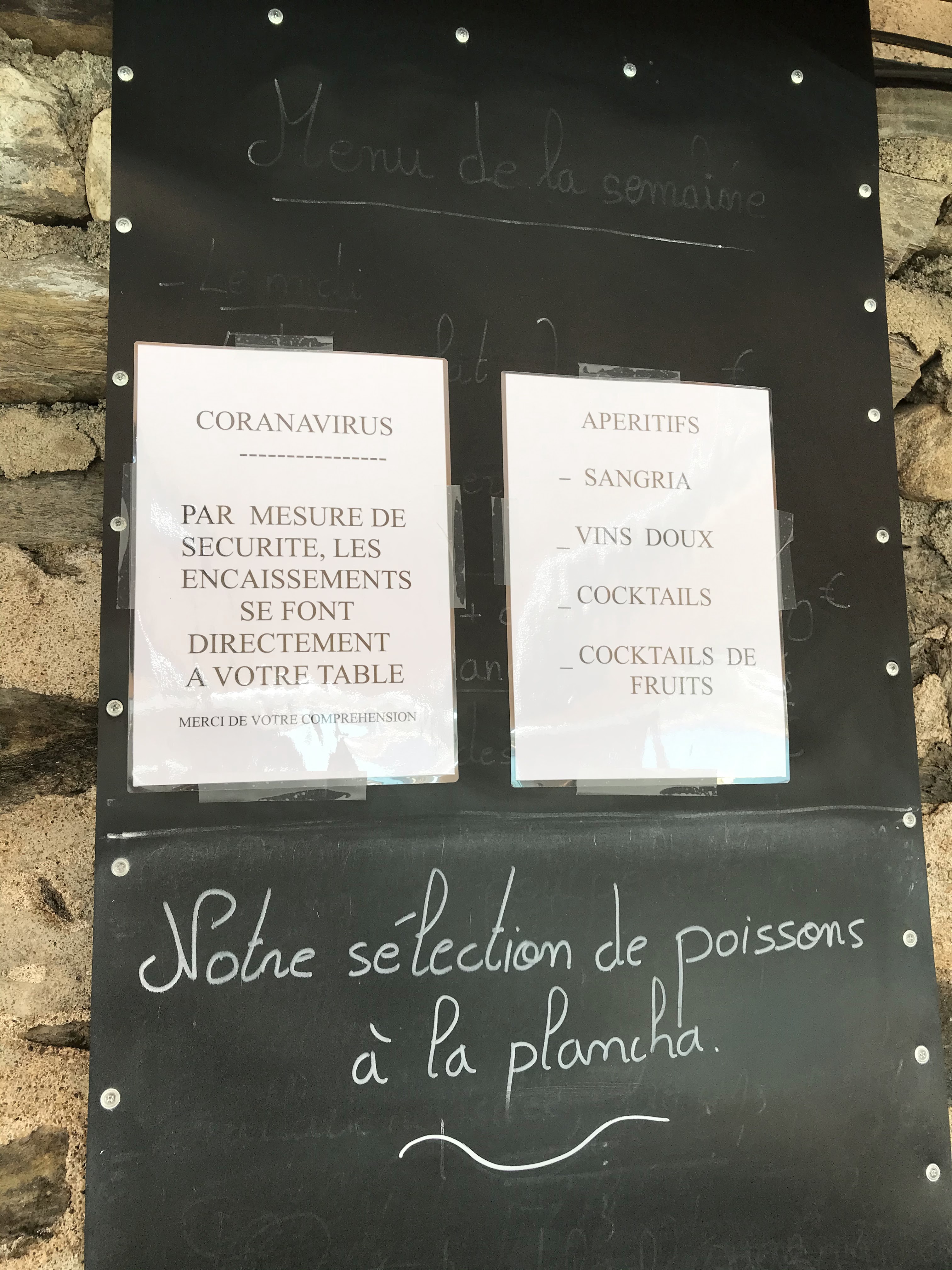 Nous avons commandé deux menus complets livrés à notre hôtel. Il y avait un émincé de thon avec ses petits légumes. Le thon était mariné, sublime !! Puis un merlu DE LIGNE rôti avec un risotto à tomber par terre. Et enfin un chocolat, un gâteau aux trois chocolats avec sa crème, le tout sublime. Bravo pour cette qualité de repas malgré les conditions COVID. Un petit regret, nous avons dû demander à l'hôtel les couverts, la serviette et le pain.