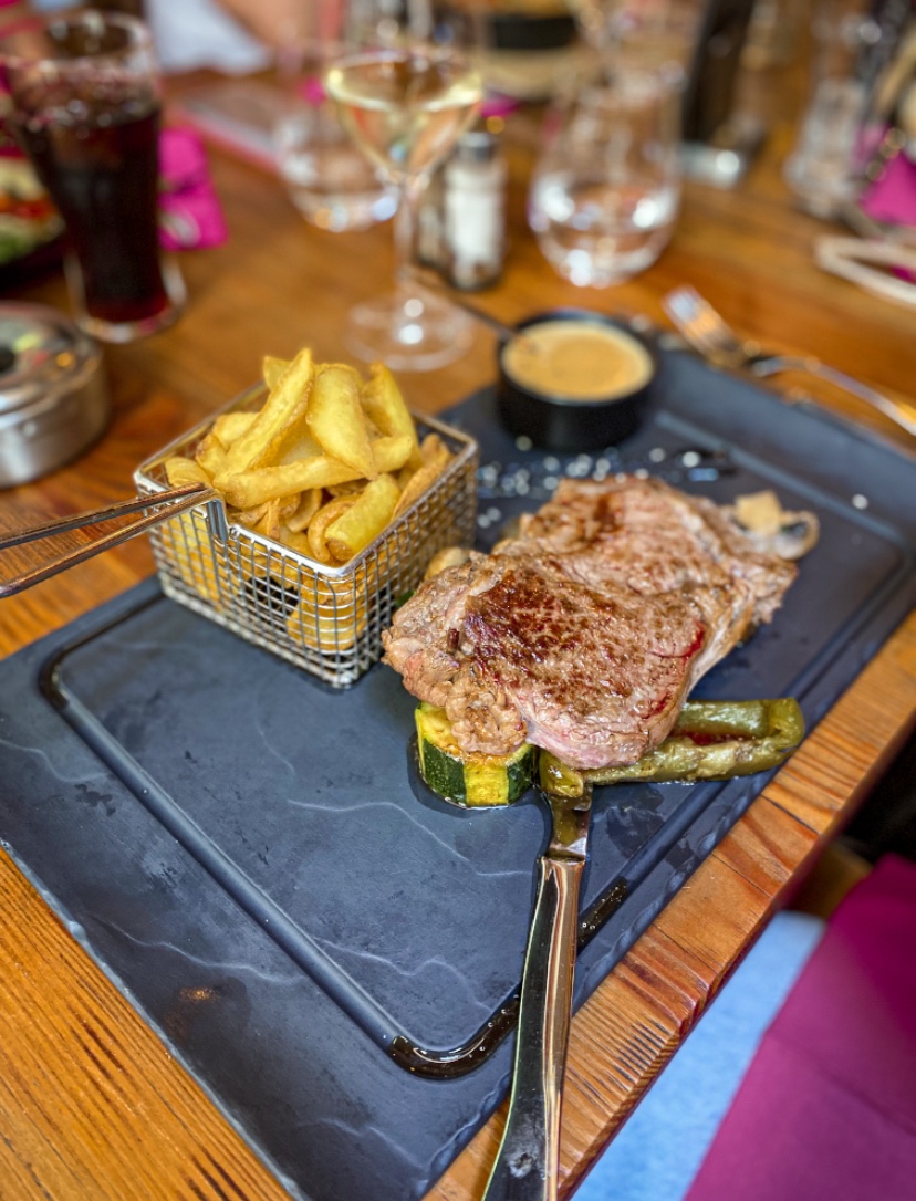 Nous étions 3 et avons pris un tartare Italien et entrecôte. Je peux vous dire, chers viandards, que leur viande est extrêmement délicieuse, tendre et fraîche !! Les serveurs sont au petit soin ! J'ai amené mon petit chien, et sans rien demander un des serveurs a amené une gamelle d'eau!! Je recommande expressément ce restaurant très joliment décoré et romantique !! Leurs desserts sont à tomber ont les a pu les apprécier grâce au café gourmand.