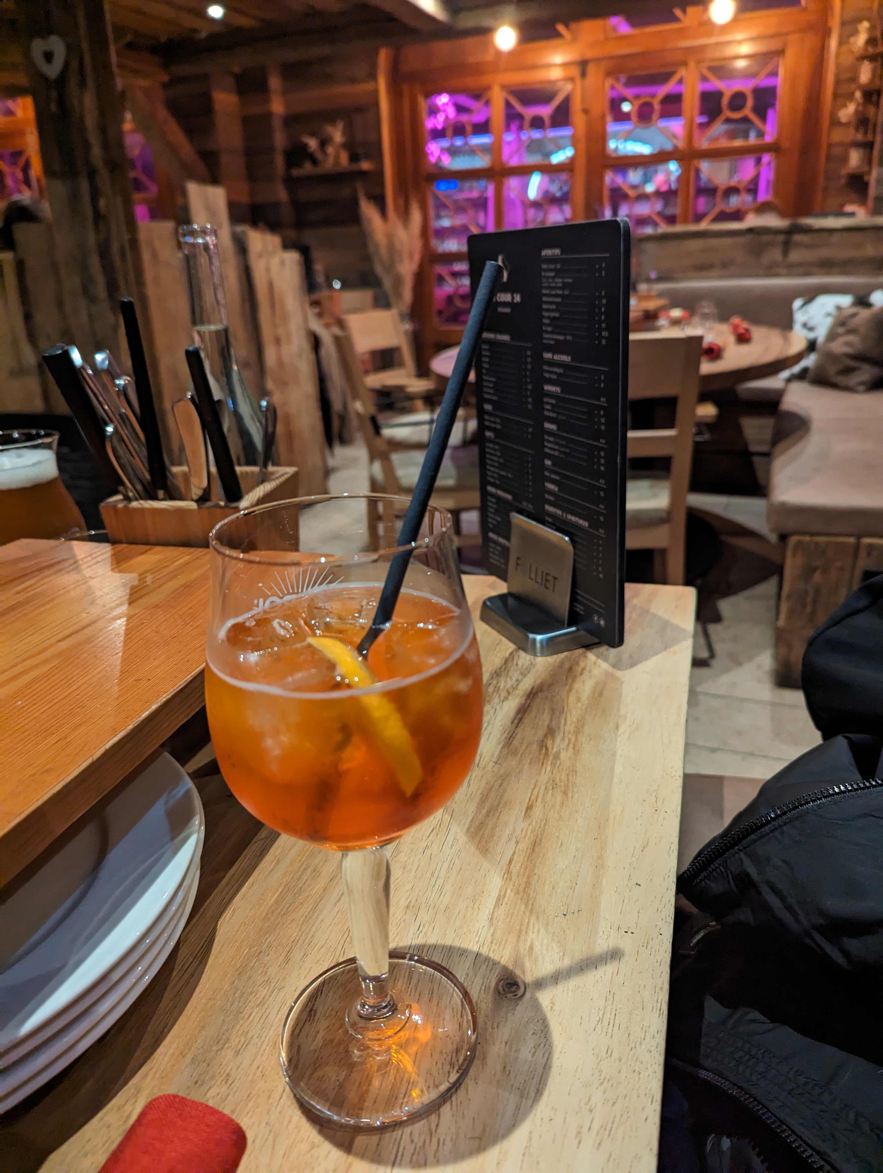 Nous y avons mangé un midi et un soir. Nous avons pris, tomme au four, burger alpin , crozet et crème brûlée. La cuisine est bonne, la tomme au four est excellente ! Je vous la recommande. Copieux, nous n'avons pas réussi à finir nos assiettes. Le cadre est vraiment sympa, un peu en recul du reste de la rue, c'est agréable. Certains serveurs peuvent être un peu trop sympathiques ... mais dans l'ensemble nous y avons passé un agréable moment. Attention, le tarif reste quand même élevé (2 verres de vin, 2 plats, 2 desserts : 90€) Les desserts sont hors de prix à mon goût.