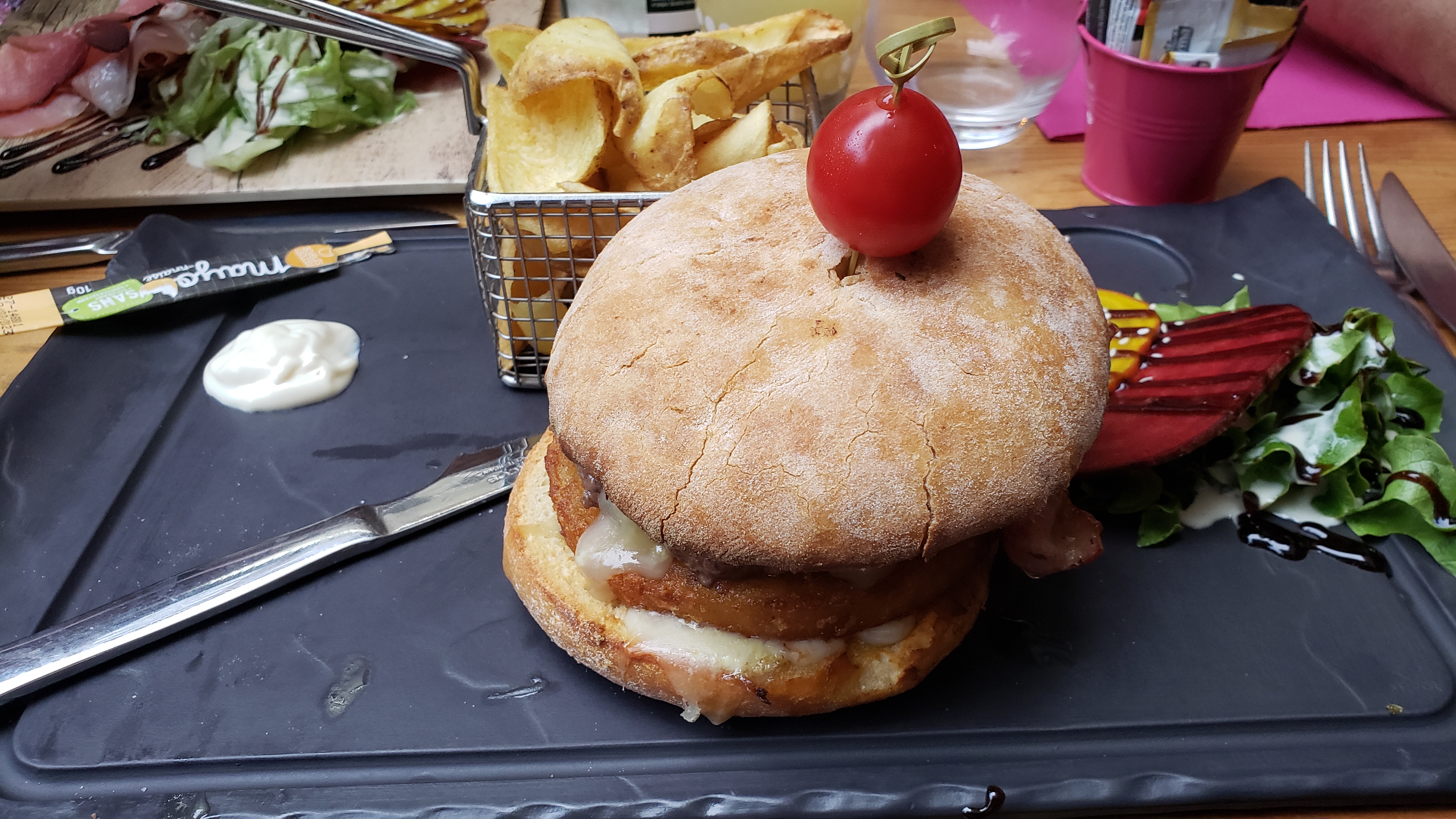 Pas hyper emballé ! Malgré un service convivial et dynamique la cuisine (que je mets toujours en rapport avec le prix) reste moyenne: une tartiflette aux cèpes où 3 lamelles de cèpes se disputaient (peut-être 4 si nous en avons raté une) et un burger )alpin par la seule présence d'une tranche de reblochon). C'est bon mais trop léger en terme de recherche et de rapport prix/prestation. Reste le site, Annecy, le bord du Thiou et une ambiance très savoyarde. Personnel présent, serviable et de bonne humeur... alors ça aide à accepter ces imperfections à nos yeux. Et puis n'oublions jamais que derrière le prix que nous payons il y a des emplois. Pas de photo car trop basique. +65 euros, 2 personnes, juste un plat chaud et une boisson.