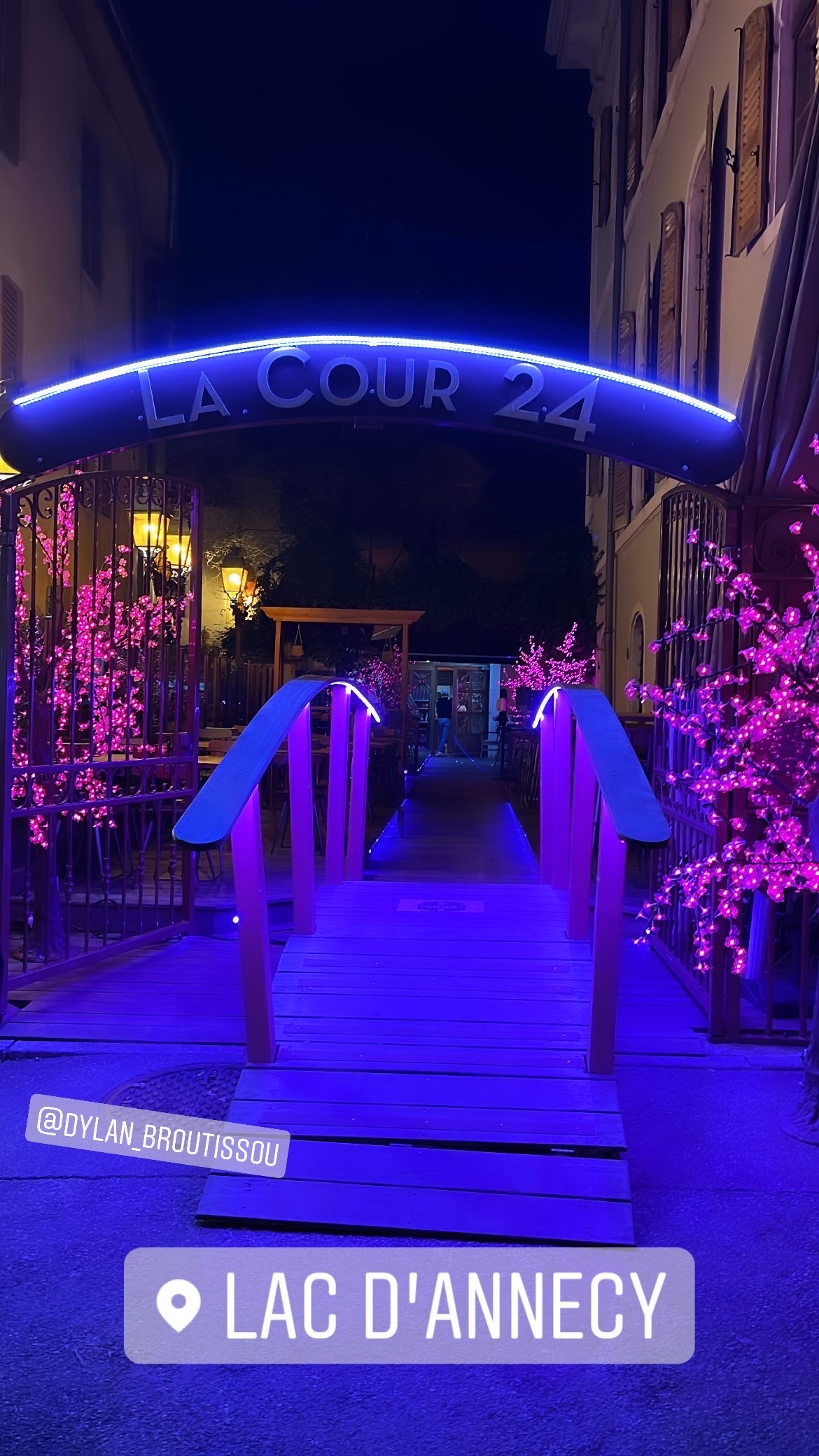 Je vous conseille le restaurent du chalet sur Annecy ou alors le bar à vin le nid de merle.. le personnel de ses établissements sont professionnelles, les patrons sont de vrai chefs. Ne nous mette pas dehors à 23h00. Alors qu’à la cours 24.. On ne vous demande pas de contacter vos amies afin de réfléchir à ce qu’ils vont manger et de commander ‘’ déjà ‘’ la bouteille de blanc ‘’ cerise sur le gâteau, lorsque nous mangeons encore, on ne vous demande pas si vous avez choisi votre dessert. Viande trop cuite, personnel stressant qui passe la serpillère lorsque vous manger encore. Cadre très jolie, attention à ne pas se associer les arbres lumineux avec la gentillesse et le professionnalisme des ‘’ serveurs ‘’ Bref.. bon courage :) Je vie sur Annecy, je connais bien la région.. je ne suis pas une touriste et c’est bien pour sa que je me permet de vous prévenir :) M e r c i