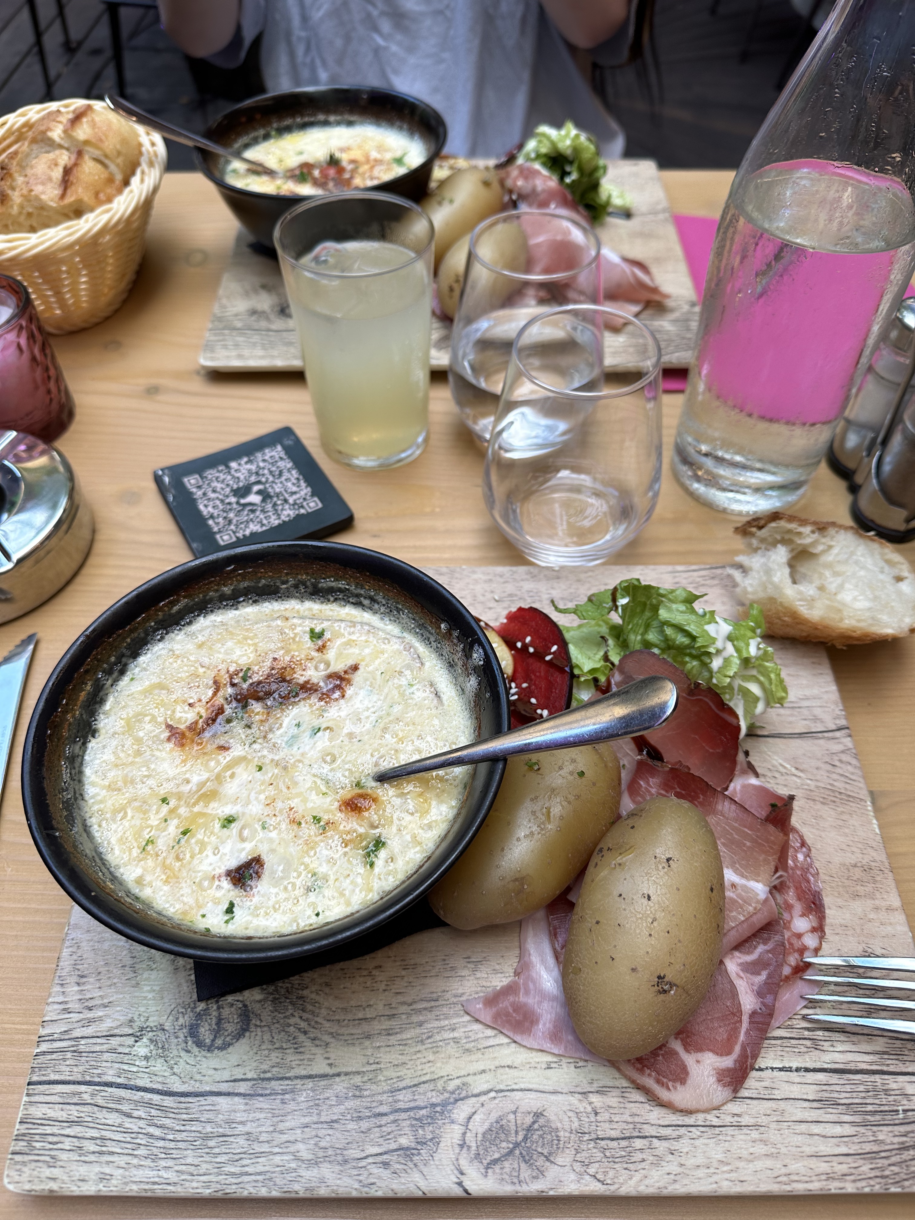 Arrive à 20h sans réservation, table libérée pour 20h30 le temps de flâner un peu dans Annecy ( le restaurant est parfaitement placé dans le cœur de la ville ) Un accueil parfait et une fondue savoureuse pour un mois d’août 🤩 ! Les yeux fermés 🙈