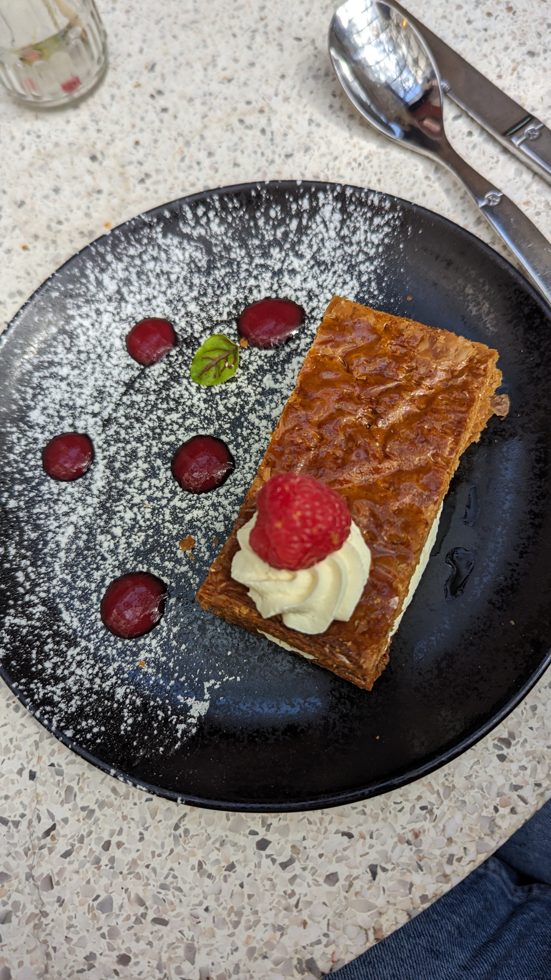 Cadre agréable. On s'est régalé avec le plat de mamie (blanquette et frite maison) et le dessert de l'apprenti (millefeuille praliné)..