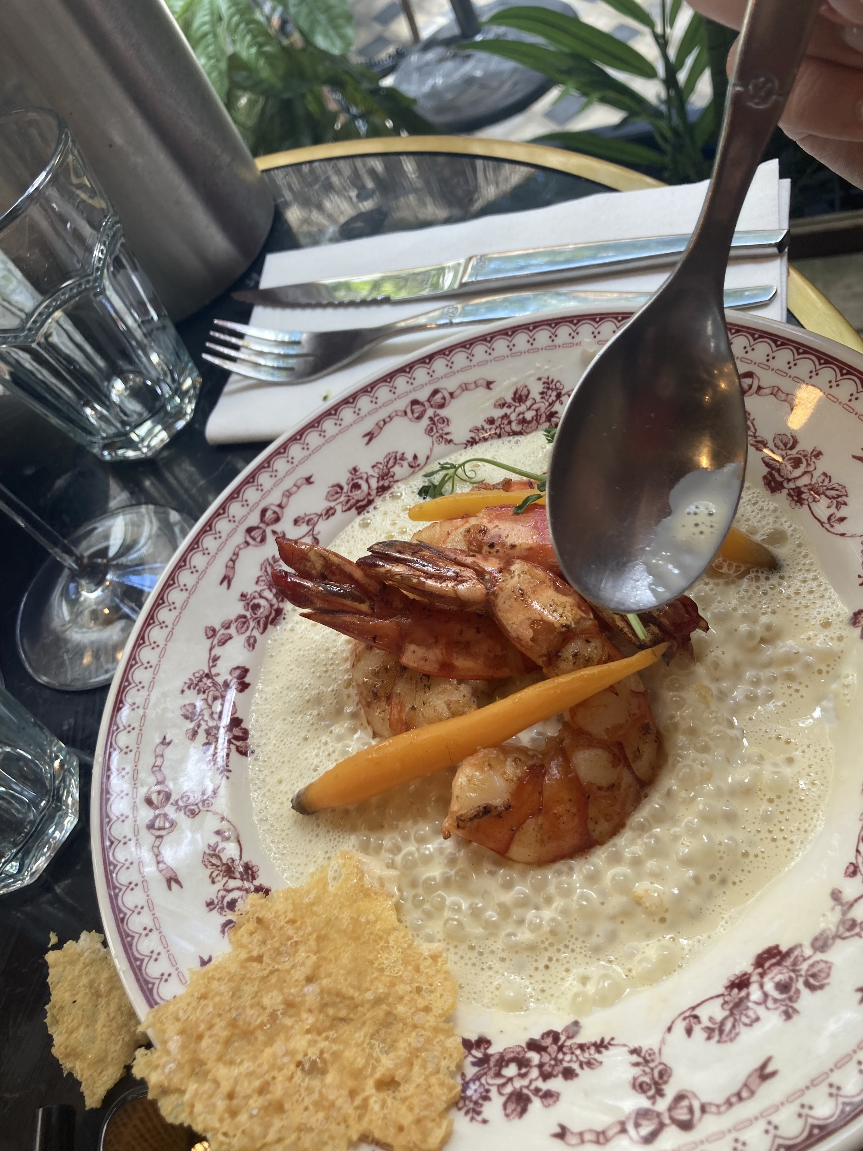Tout était encore parfait, le personnel, la qualité des produits, les présentations, le service.. De retour dans la petite véranda, toujours avec la vue sur la cour ;) Une bonne dégustation ! délicieux... Petit moment de bonheur...