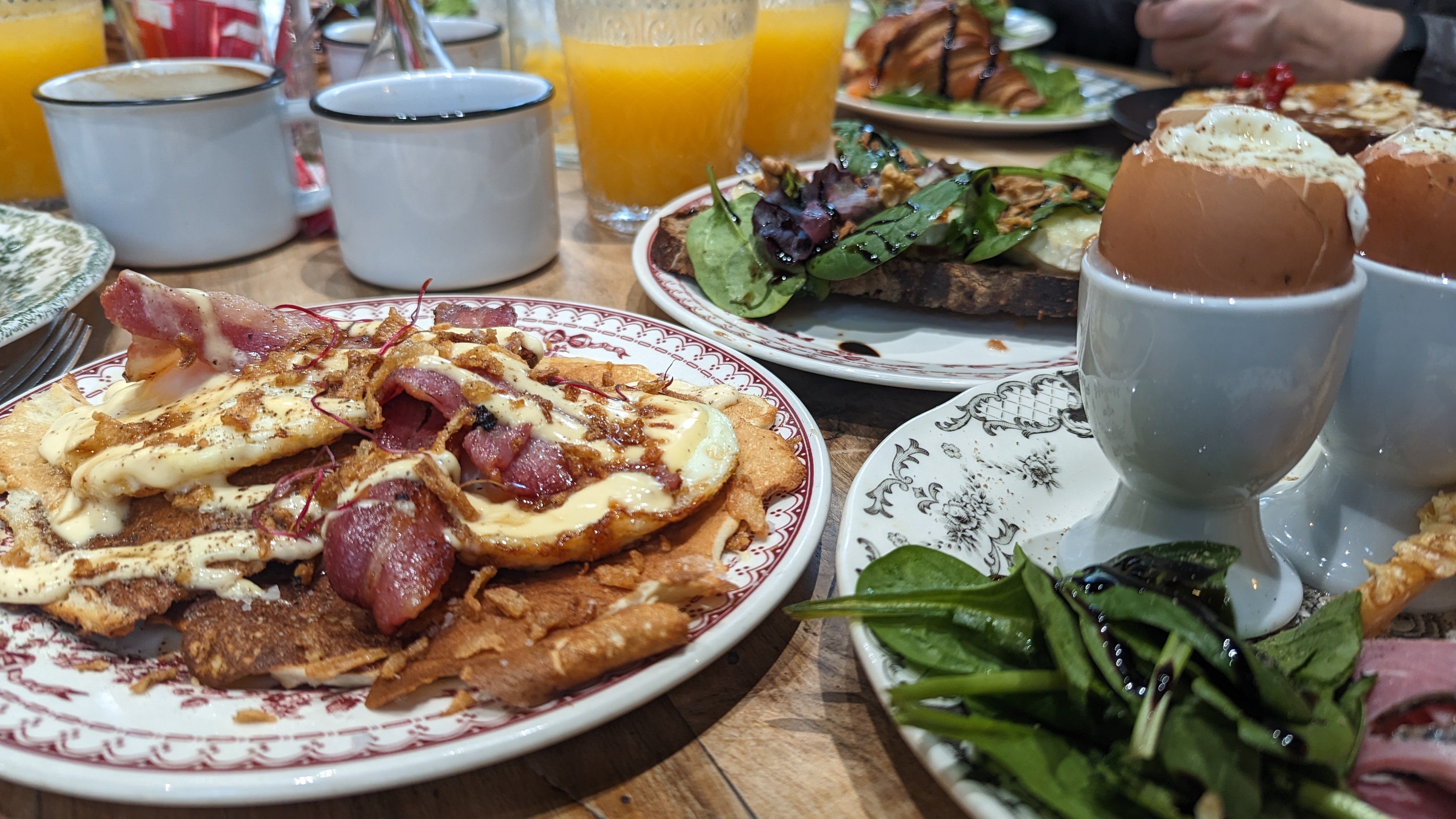 Je connaissais pour diner et javais beaucoup aimé mais nous y sommes allés en famille pour le brunch et avons tous étés déçus. Le service était très lent mais cela peut arriver. En revanche tout était froid, les œufs mollets, le bacon, la gaufre salée, la sauce hollandaise. Seulement les œufs brouillés étaient tièdes. Brioche perdue froide, pancakes froids... La tartine Avocat avait dû être préparée longtemps à l'avance car impossible à couper et malheureusement l'avocat dessus n'était pas à la hauteur non plus (comme un guacamole industriel) Le jus d'orange n'est pas du jus pressé non plus. Encore un détail mais c'est dommage. Malgré la gentillesse du personnel le brunch n'est vraiment pas à la hauteur, ou alors nous n'avons pas eu de chance ce jour là. Mais nous n'étions pas les seuls à nous plaindre. On nous a répondu que c'était normal que tout soit servi froid. Je n'y retournerai pas malgré le cadre agréable.