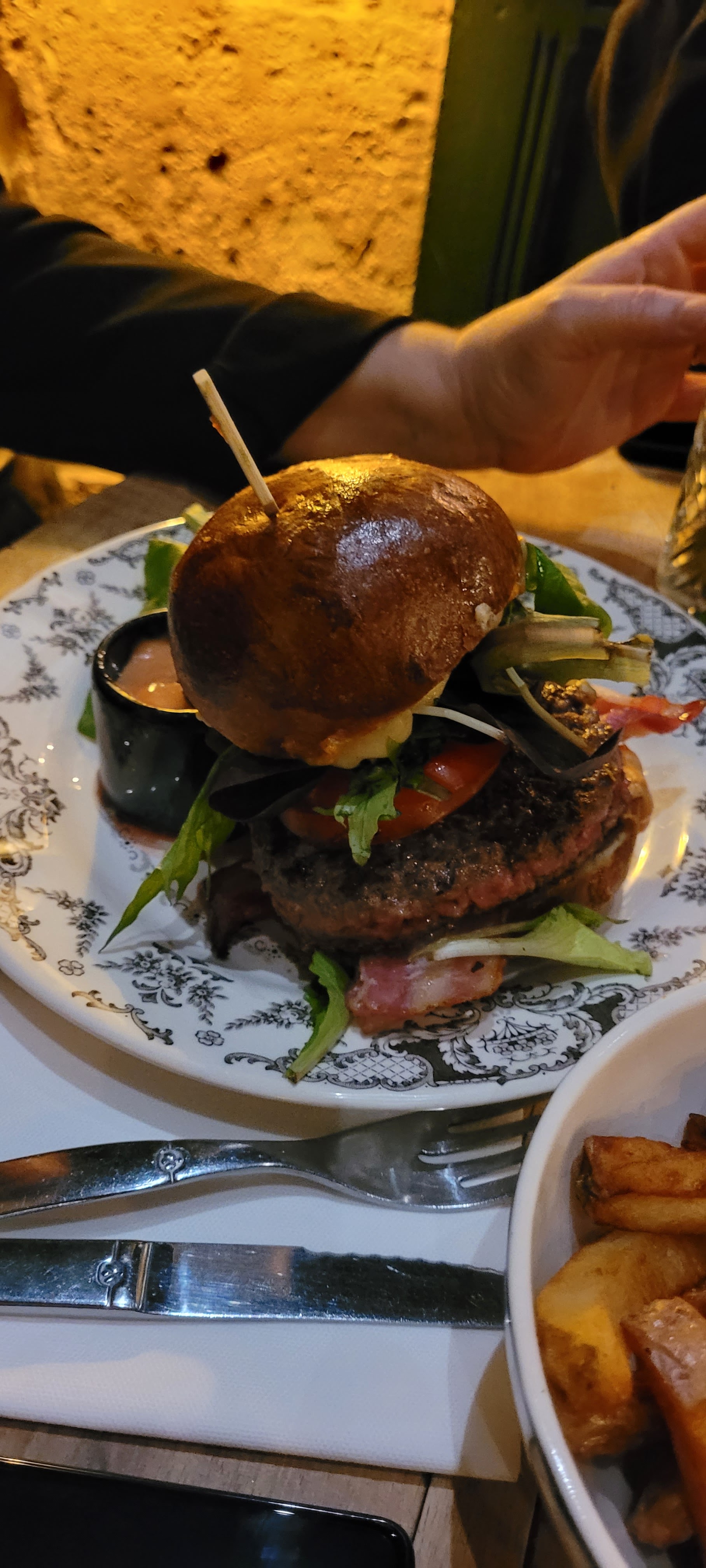 Un peu déçue par rapport aux critiques positives que j’avais lu. Certes le hamburger était correct mais les frites vraiment trop cuites et trop grasses. Difficile de passer une soirée agréable entre amis quand le personnel vient débarrasser les plats avant que vous n’ ayez terminé et que l’on vous apporte rapidement la note vous signifiant qu’il est temps de libérer la table pour le prochain service.