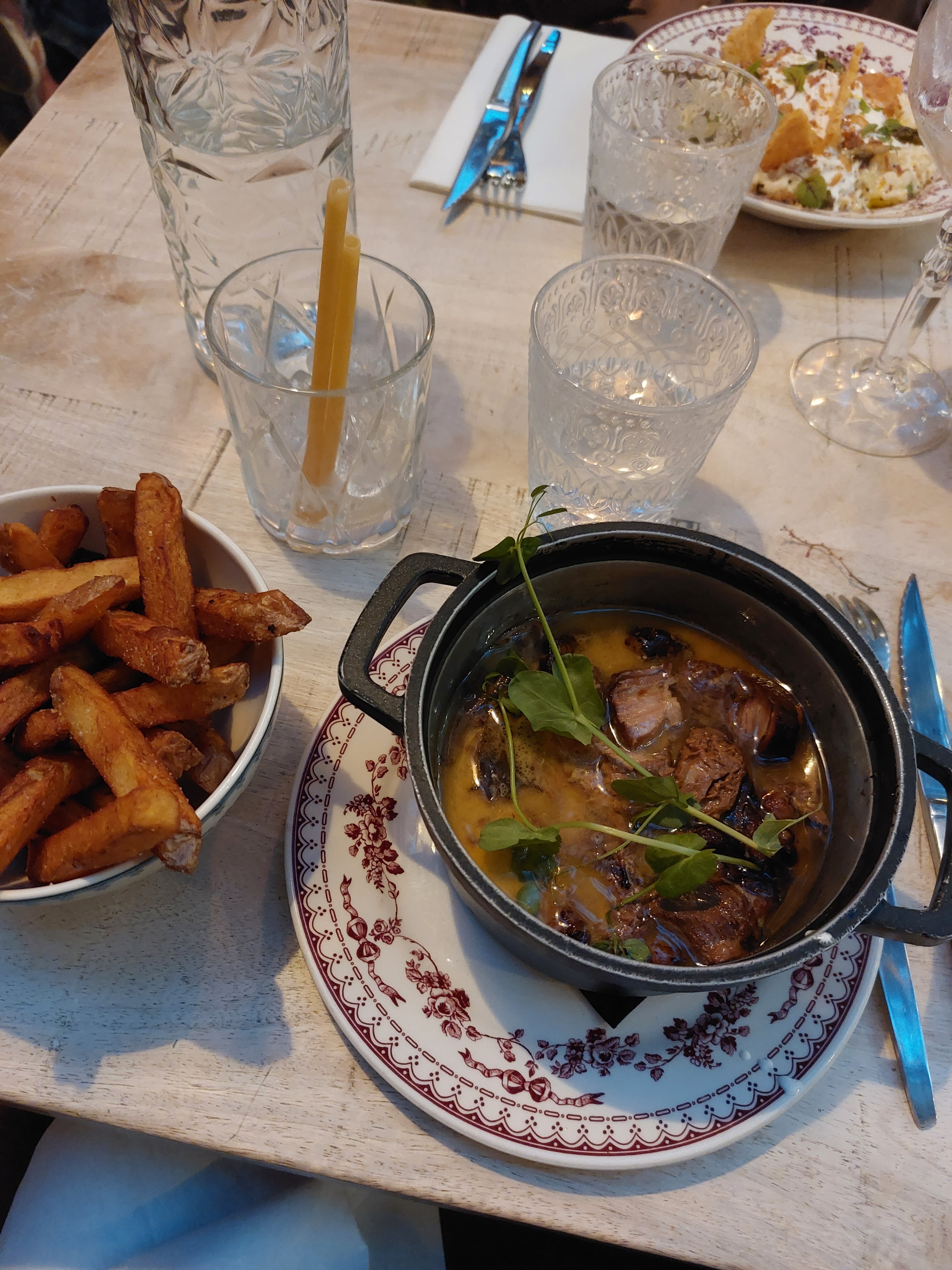 Le resto est vraiment très joli et agréable. Nous y avons bien mangé. Ce soir là, il n’y avait plus de places à l’intérieur, nous avons donc mangé dehors sous une chaufferette (super esthétique par ailleurs et très surprenante). Bien qu’il y avait des plaids mis à disposition, nous avons eu froid donc hâte d’y retourner pour savourer encore plus le repas.