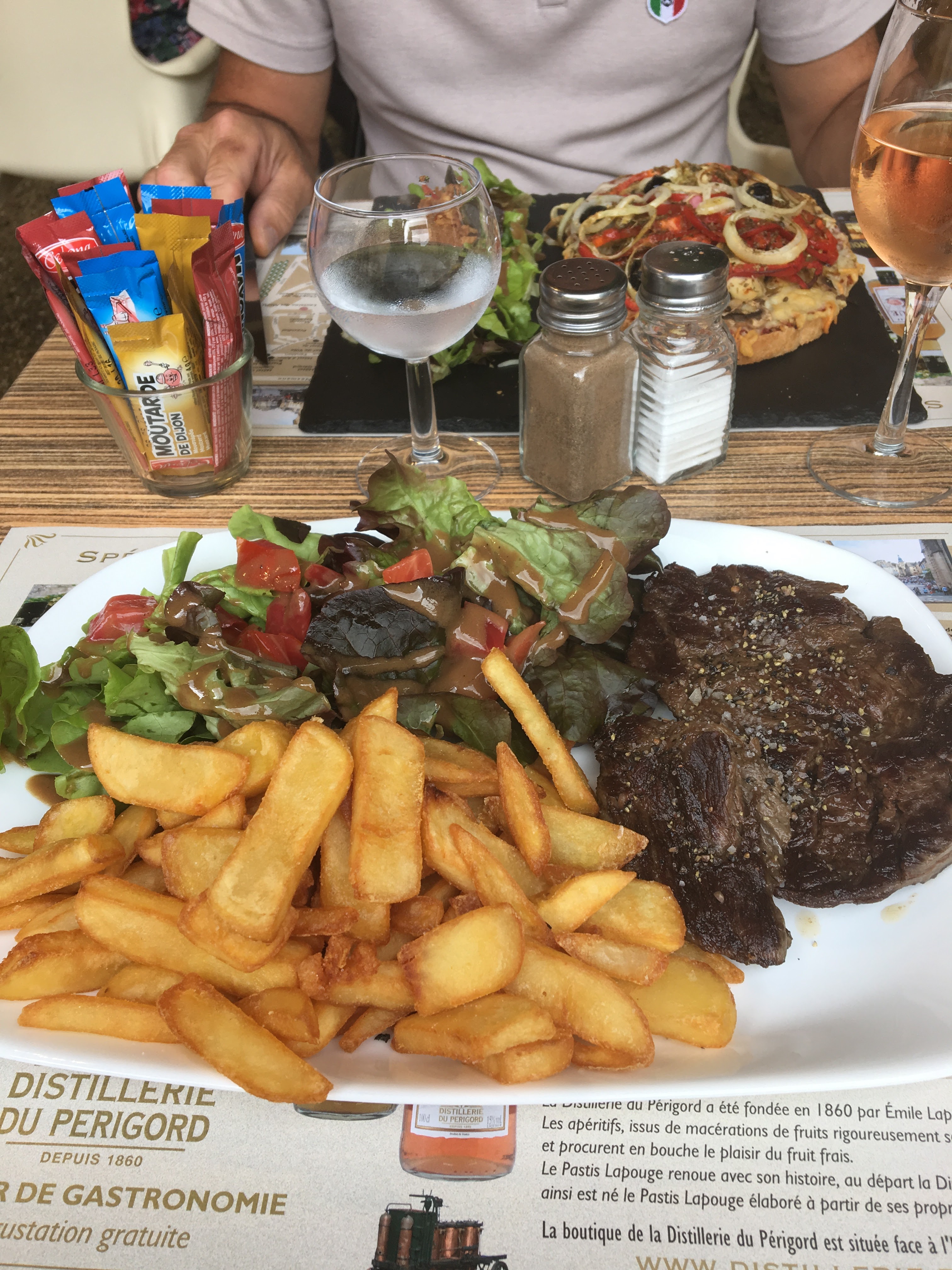 Diner en terrasse avec superbe vue sur le château. La brochette de magrets accompagnée de frites et de la sauce aux cèpes était succulente. Le personnel était très sympa. Je recommande vivement.
