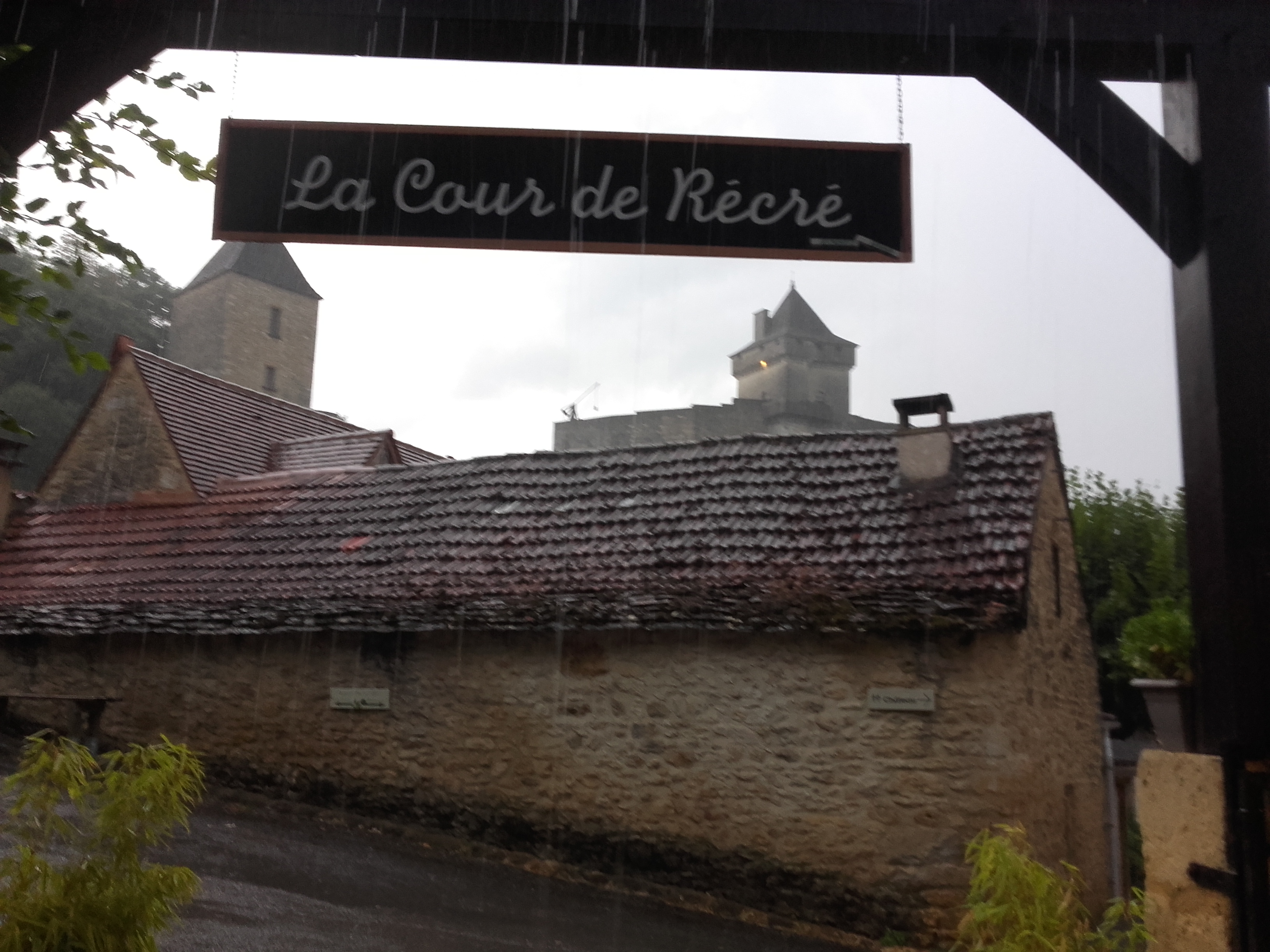 Voici un restaurant où il fait bon flaner lors d'une pose déjeuner pendant votre balade à Castelnaud. La terrasse à l'ombre offre une vue magnifique sur le château...La carte restreinte et les plats du jours donne une très bonne indication sur le fait maison... Même les menus enfants ont une présentation soignée de la part du chef...J'ai rarement vu cela ailleurs... Le service est fait de façon très agréable et dans la bonne humeur... Le Serveur nous a apporté une carafe d'eau sans qu'on lui, preuve qu'on ne vous oblige pas à consommer...Les prix sont raisonnables pour les plats servis... Penser toutefois à réserver une table si vous voulez profiter de ce lieux pour votre repas du midi sinon il vous faudra attendre et même là, la serveuse le fait de façon agréable et avec un grand sourire..Le jeune seveur parle très bien l'anglais et est d'une gentillesse parfaite avec une grande attention... Un exemple, j'ai réservé le jour même à 10h00 pour avoir une table pour 12h30... les réservations sont prises pour un repas entre 12h00 et 12h30... N'hésitez plus, la Cour de Récrée est l'endroit idéale....