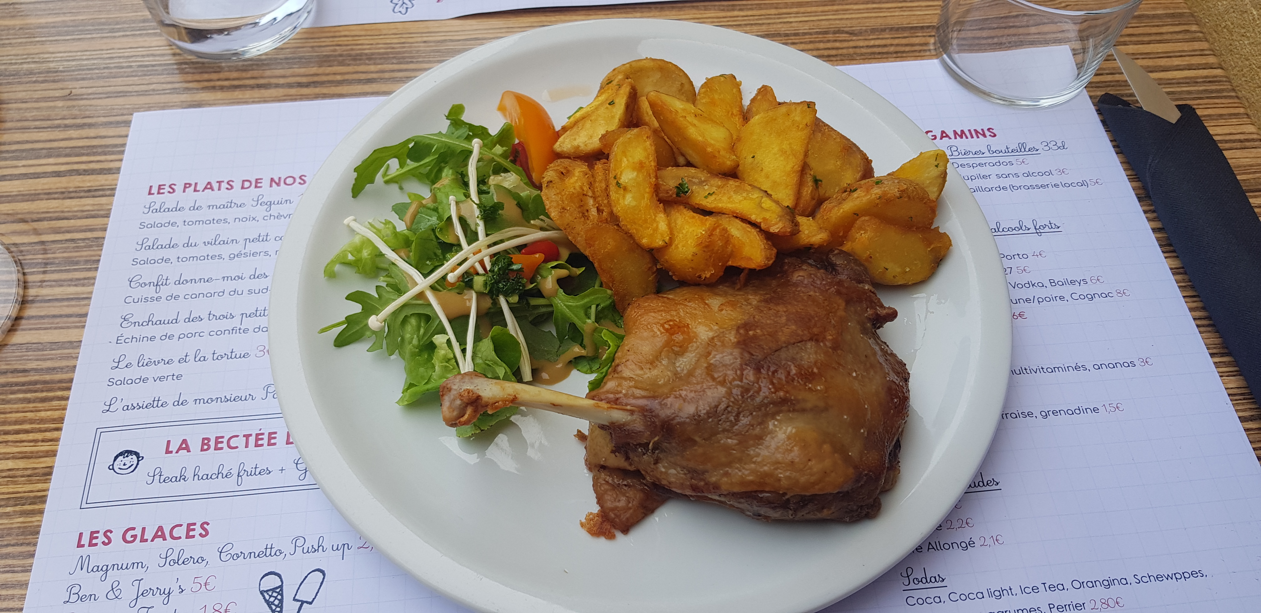 Excellent : salade du vilain petit canard (perigourdine) copieuse et délicieuse 😍 Accueil au top malgré la foule et serveuses très sympas. Une adresse à retenir ;o)