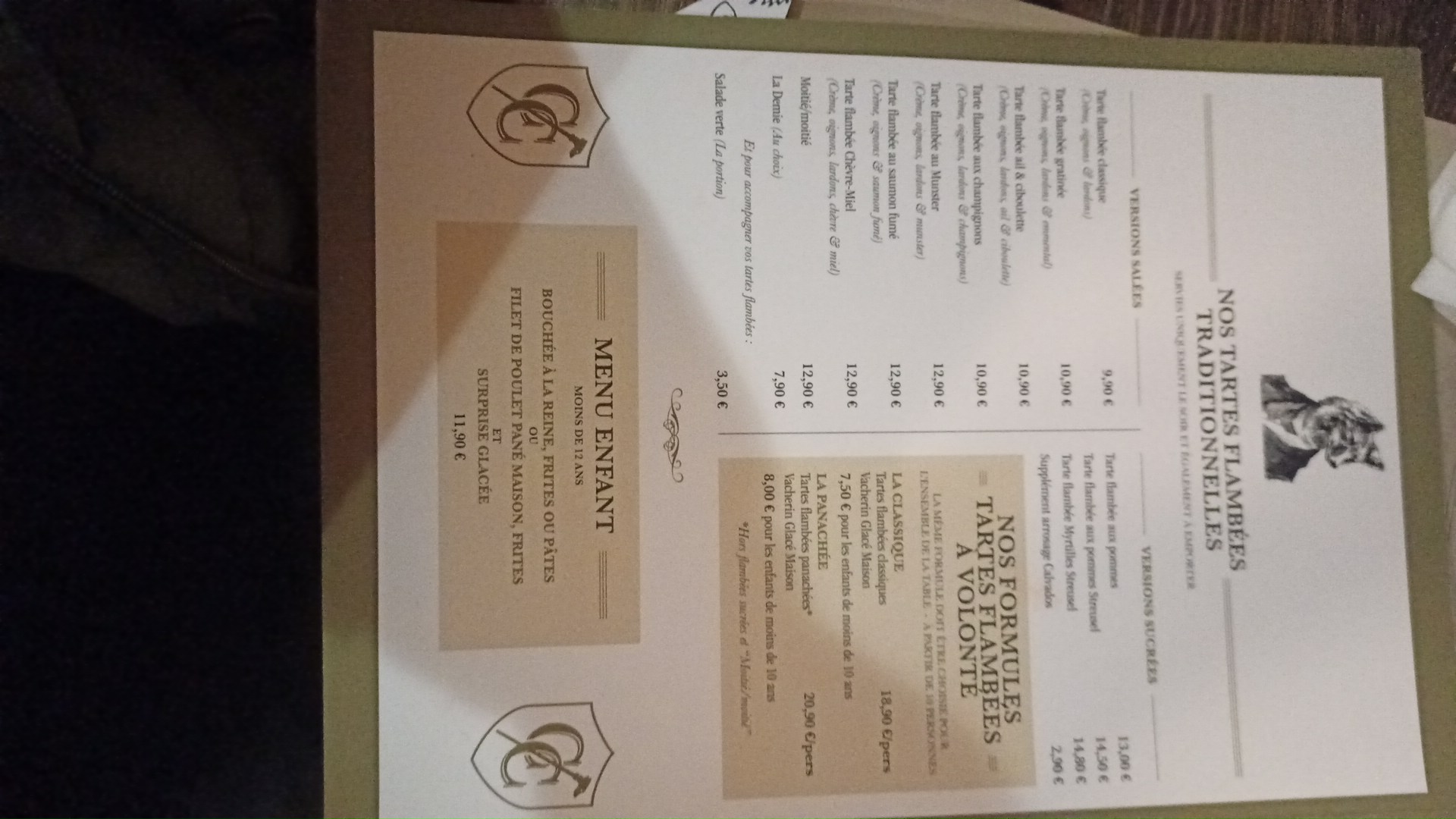 Franchement déçue. Nous sommes revenus cette année, pour manger des tartes flambées, mais vraiment déçue de la nouvelle formule. Plus de 20 euros, pour la formule à volonté qui n’inclue plus les tartes sucrées. Sachant qu’en plus de ça , il faut être minimum 10 pour la formule à volonté. Ça a vachement augmenté depuis l’année dernière et les tartes flambées sont vraiment moins bonnes, et beaucoup moins garnies. Le service était lent, plus de 10 min d’attente entre chaque tartes. C’est dommage car nous ne reviendrons plus.