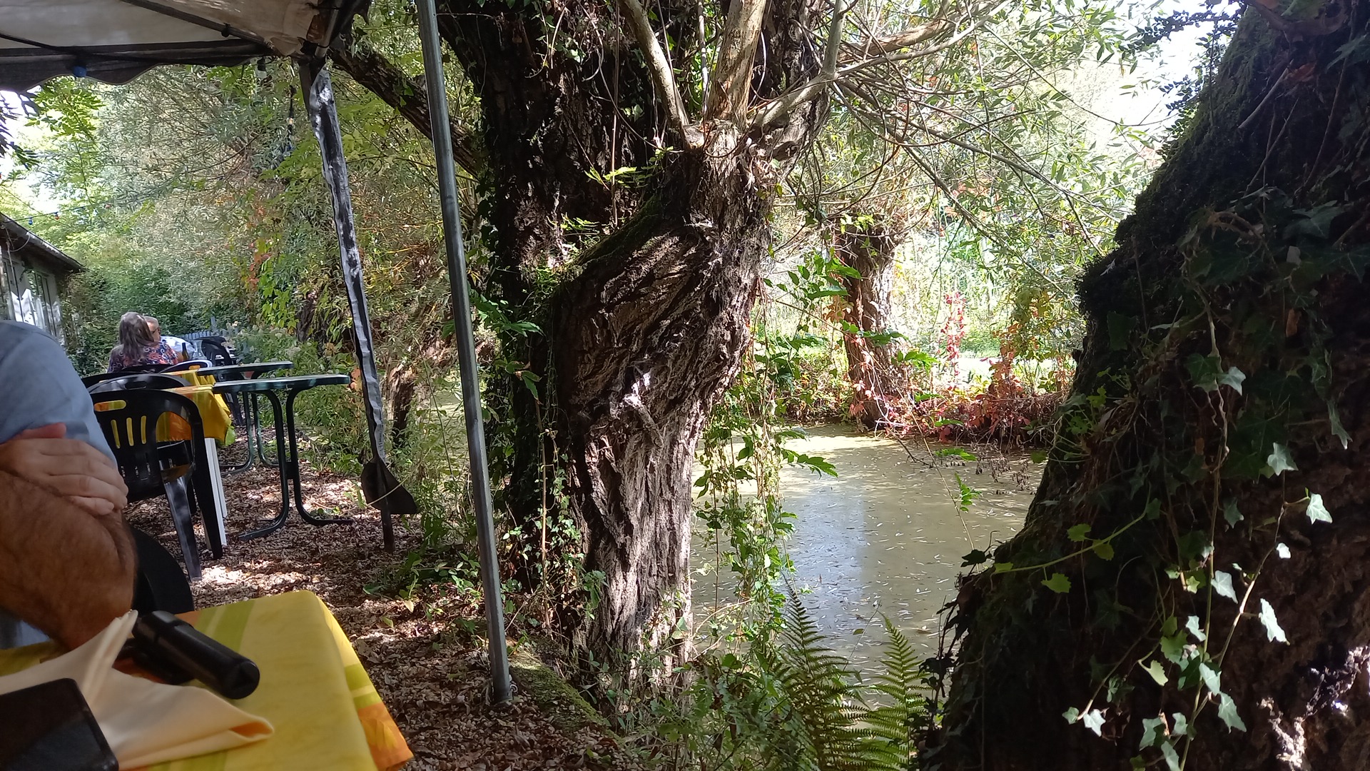 Très agréable sous les arbres au bord de l'eau et des canards. Les plats sont très bon.