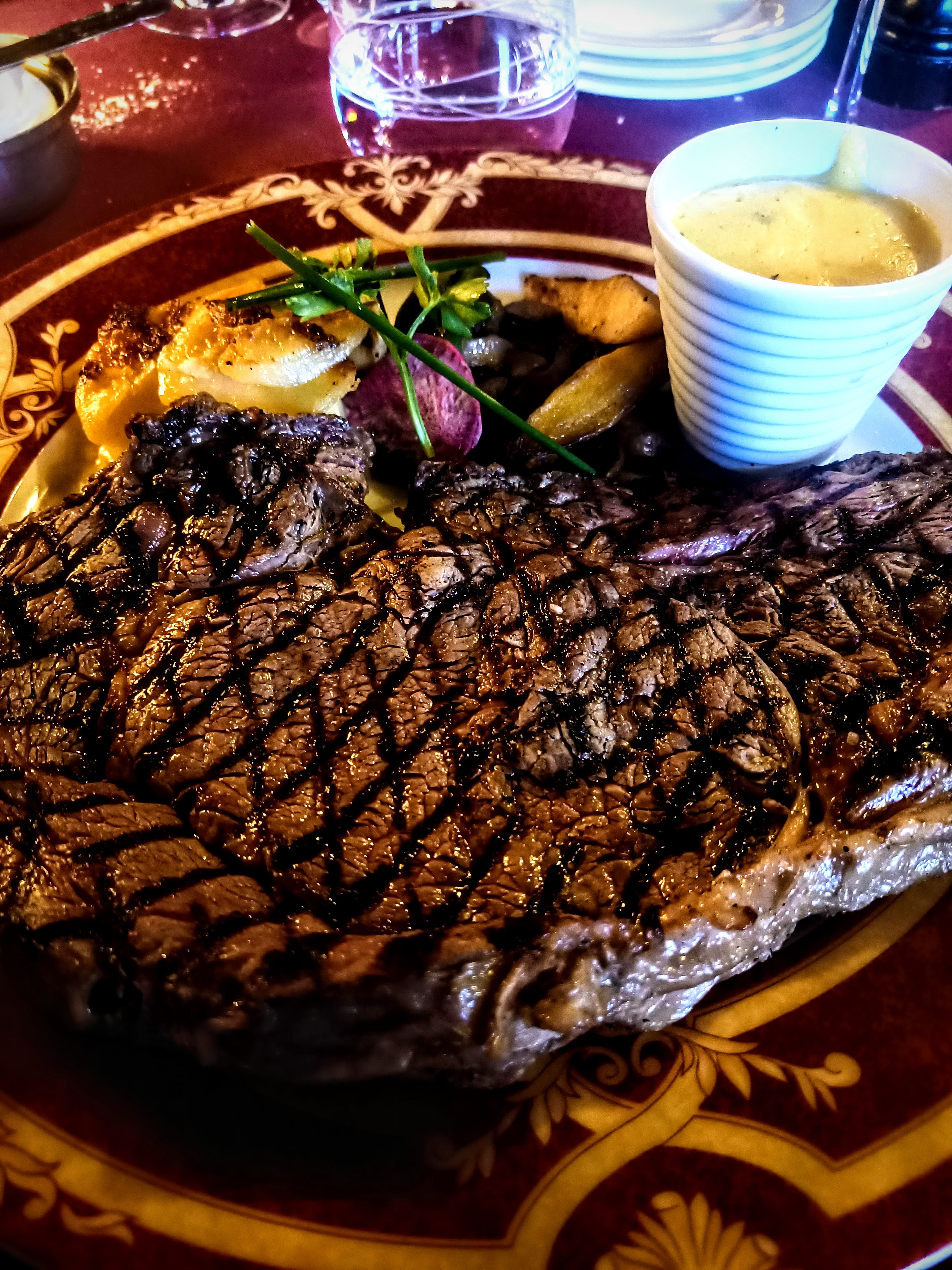 On est venus 4 ou 5 fois, c’est une étape « indispensable » quand on passe à Rouen. Le menu des impressionnistes est tres accessible (39/40€) et permet une belle dégustation. Les cocktails ne sont pas avares d’alcool, la patronne est un monument ici, blonde brushinguée, qui a su nous reconnaître. La première fois on avait rigolé d’avoir eu une carte avec prix pour monsieur et sans prix pour moi mais cette tradition a été abandonnée ! Ouf. La déco est vintage, les murs sont blindés de photos de stars venues depuis 60 ans, c’est un style qui ne vieillit pas. Bref, ça restera toujours un plaisir (et non seulement pour la cote de bœuf mais surtout pour le soufflé en dessert !!)
