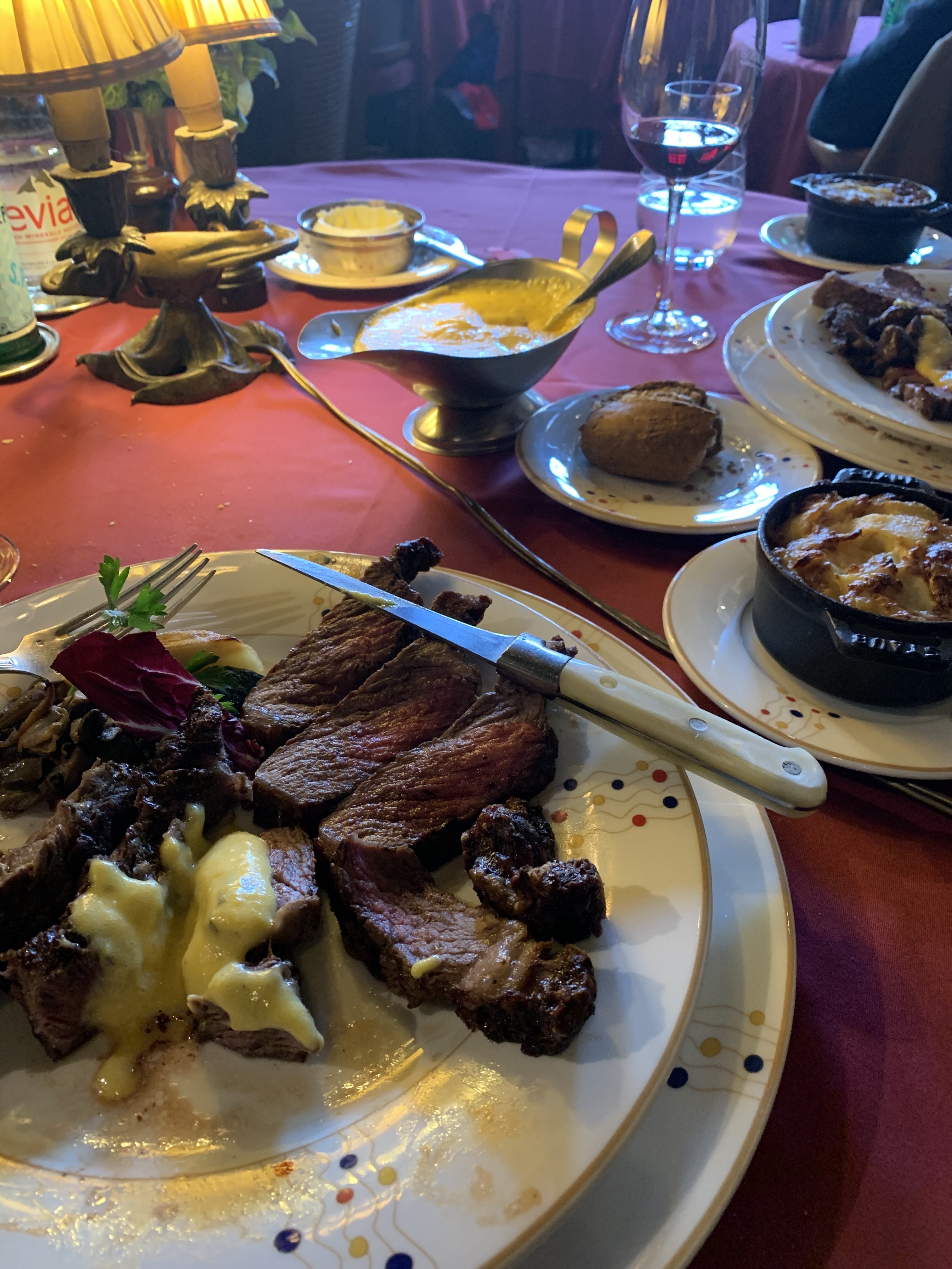Un établissement d'une vieille école avec une tonne de réputation, comme en témoignent toutes les photos de visiteurs célèbres placardées dans tout le restaurant. Il y a 3 étages et chaque étage était plein quand nous sommes partis. Nous avons testé le menu à prix fixe avec le bœuf spécial Normandie. C'était délicieux! Des portions généreuses pour le prix, nous étions rassasiés à la fin. La viande était parfaitement cuite. Dès que les tables à manger de notre étage sont remplies, le service ralentit considérablement.