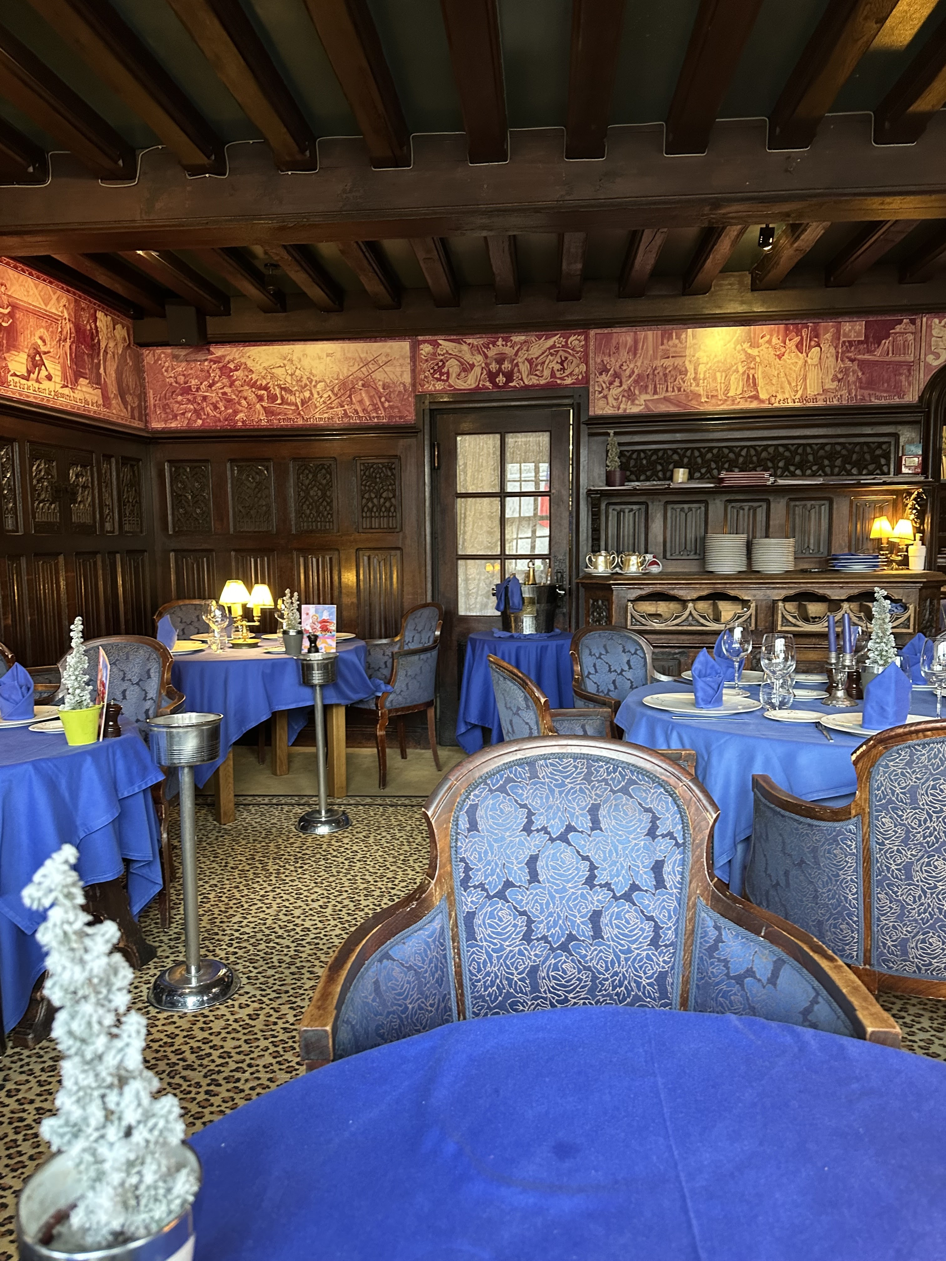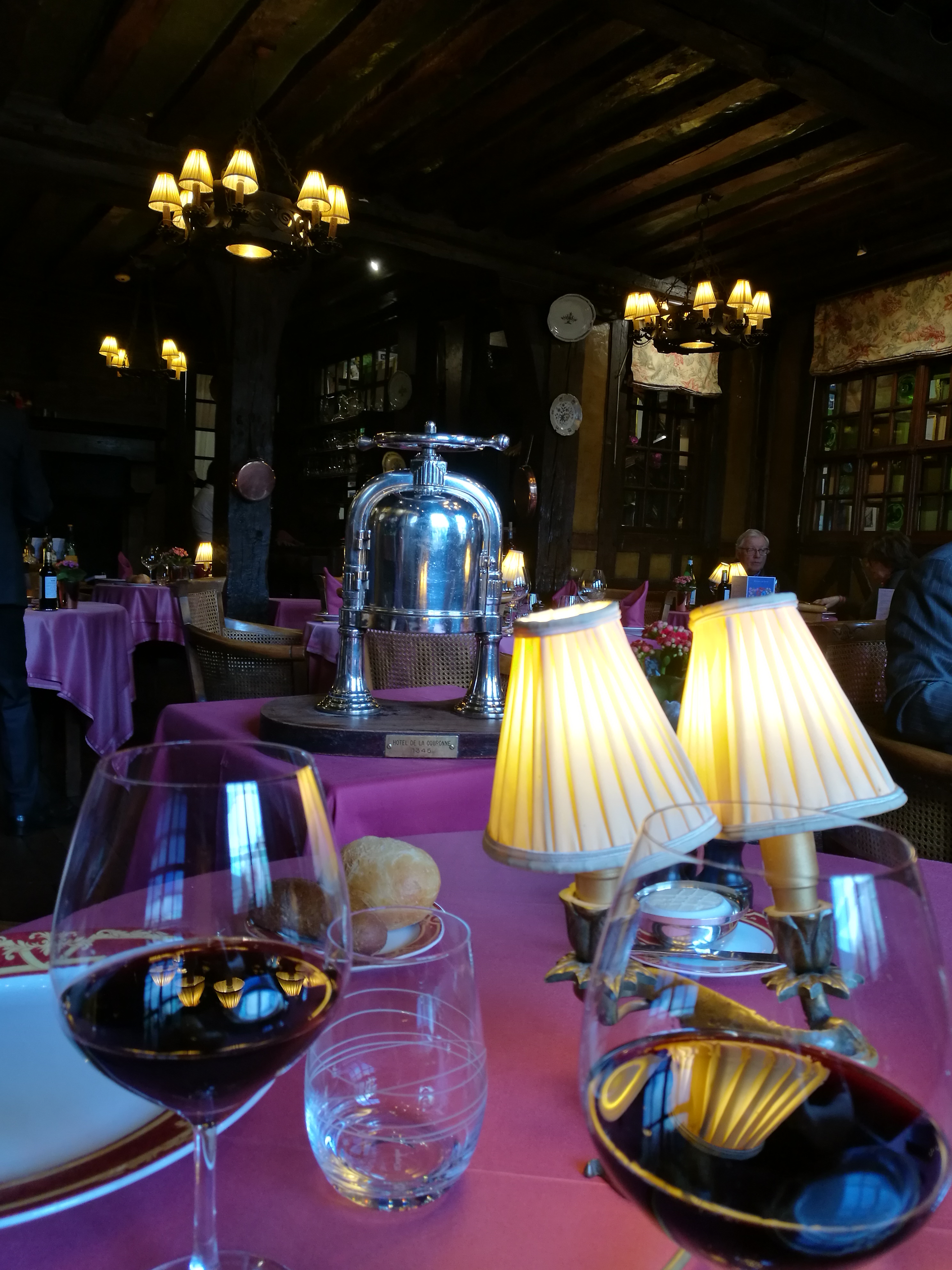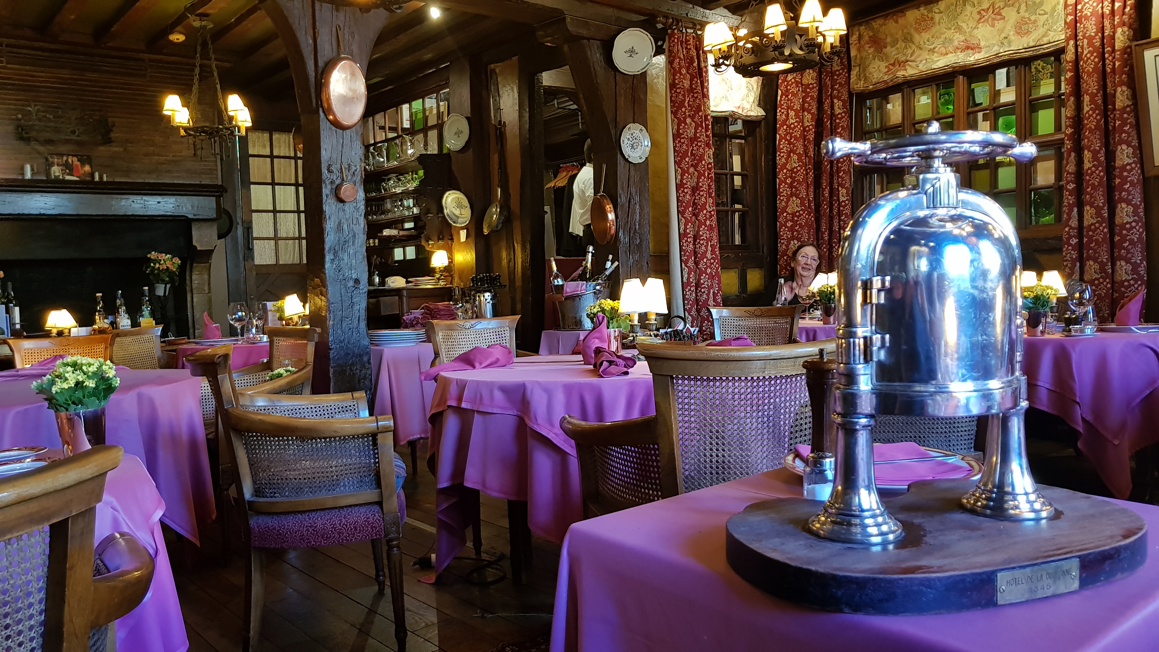 restaurant le plus vieux de France, si je ne me trompe pas de l'an 1345, c'est à tenter, ce n'est pas aussi excessif que nous pourrions imaginer menu à partir de 38€, ils ont une spécialité que j'ai préférée voir sur la table du voisin le canard Rouennais à la presse, je vous laisse découvrir, soirée romantique assurée, à conseiller !!!