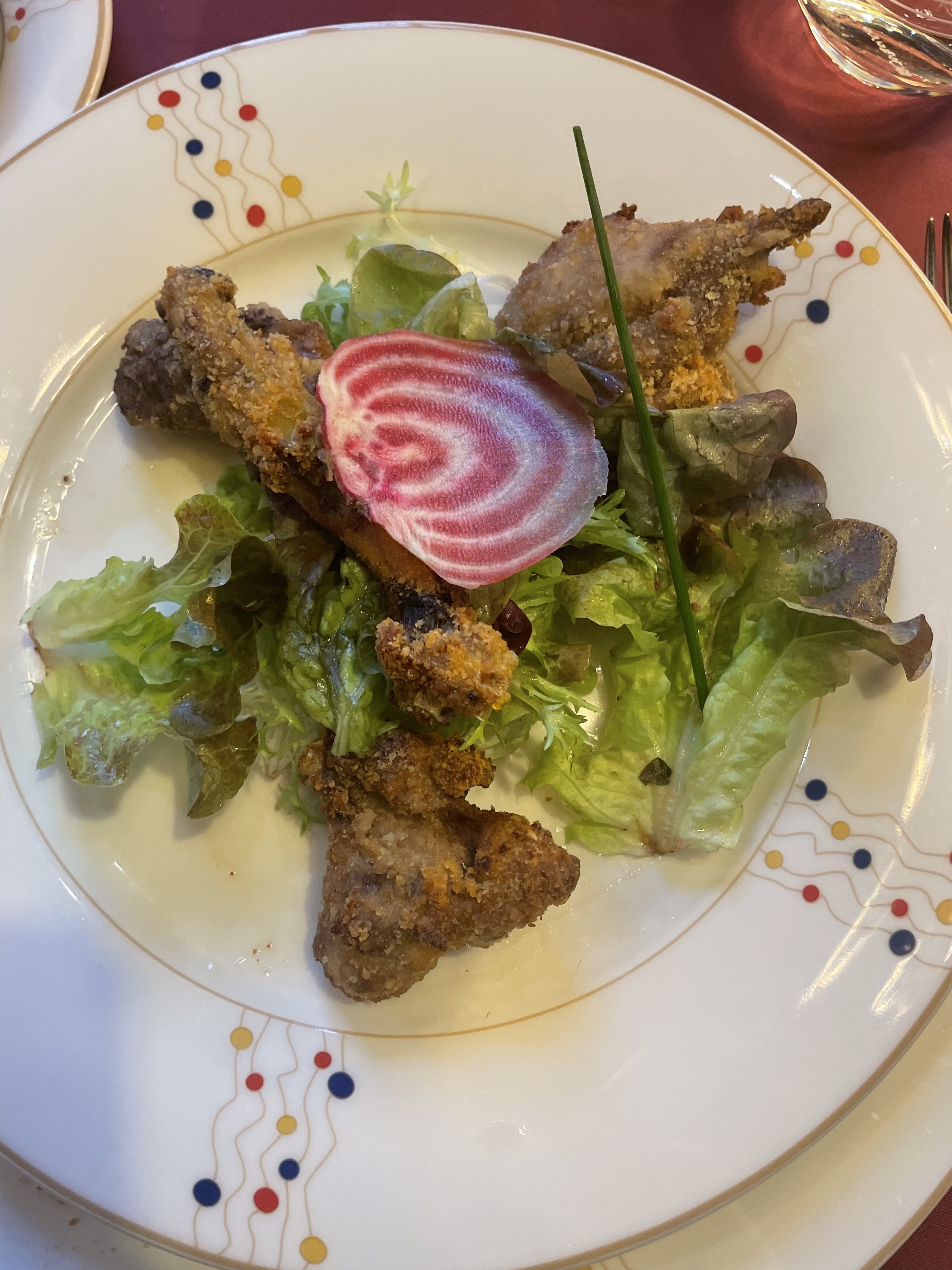 La Couronne a toute une histoire - depuis combien de temps elle est ouverte au service de Julia Child. Lorsque vous visitez, vous vous demandez s'ils s'appuient sur cette histoire et attirent les touristes - ou s'agit-il vraiment d'un excellent restaurant. Fort de notre visite, je dirai que La Couronne mérite amplement sa réputation. Nous avons eu une excellente nourriture, un service exceptionnel et vous pouvez littéralement entendre la voix unique de Julia Child alors qu'un soufflé parfait est livré à votre table. Une merveilleuse soirée.