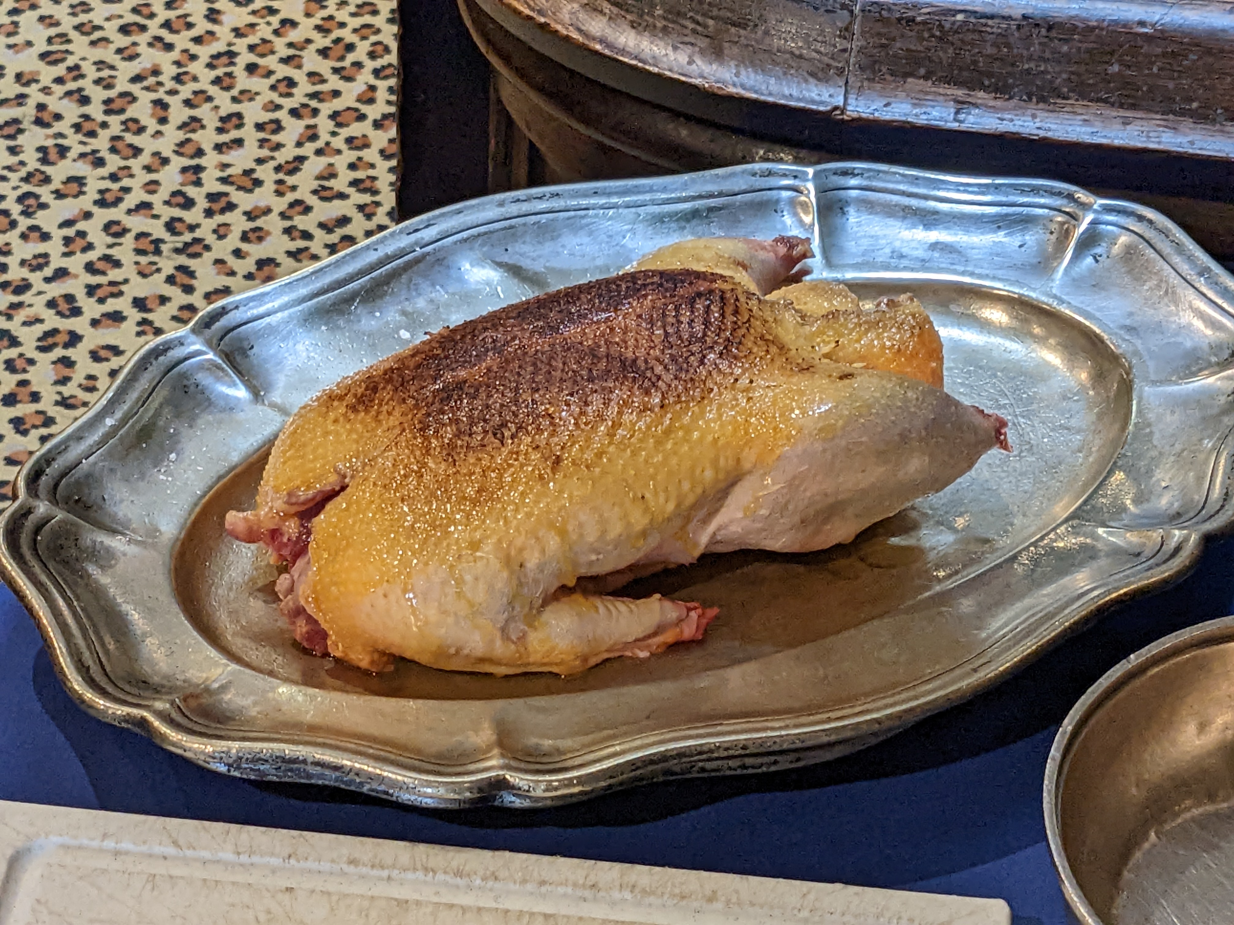 Nous arrivons à l'improviste mais la cuisine et la salle font en sorte de nous préparer le grand classique de la maison : le canard à la rouennaise ! La plus vieille auberge de France est une grande maison !
