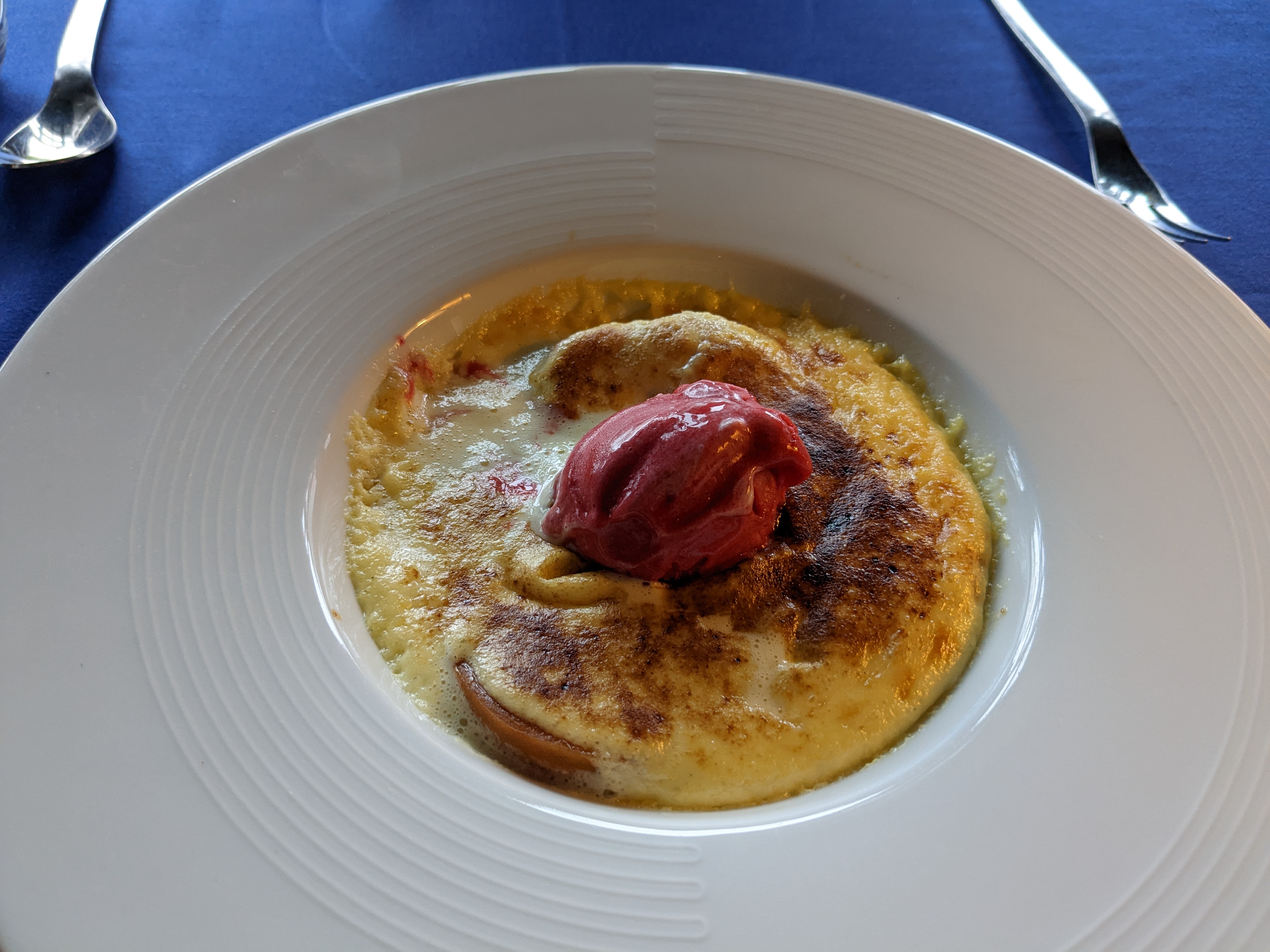 Ce fut vraiment une expérience fantastique. Tout était excellent, du service à l'expérience culinaire. Les sièges sont super. Ils ont réussi à garder le standing du plus vieux restaurant de France. Le soufflé n'était pas aussi bon que le reste de l'expérience, nous ne pouvions goûter que la partie œuf.