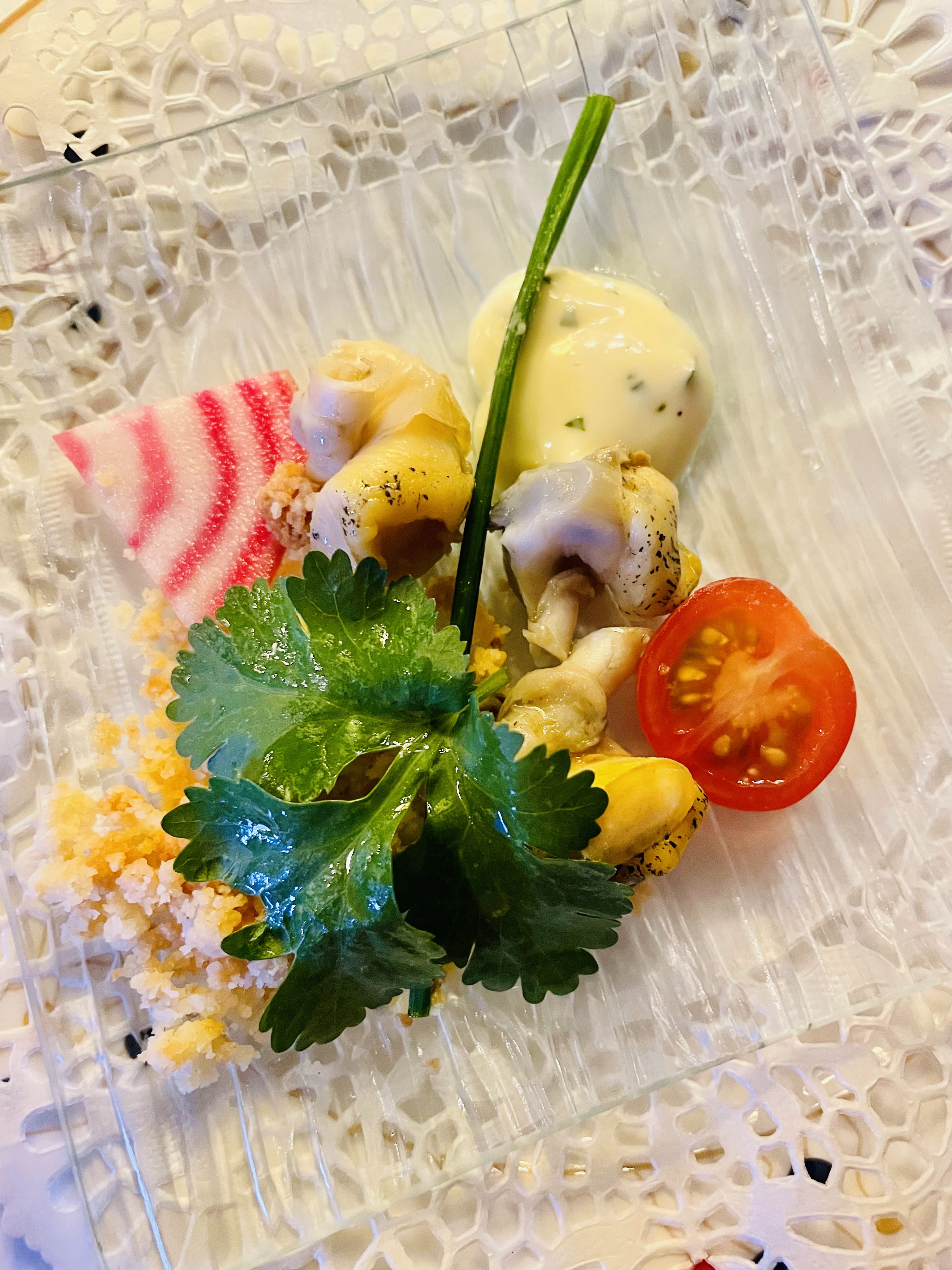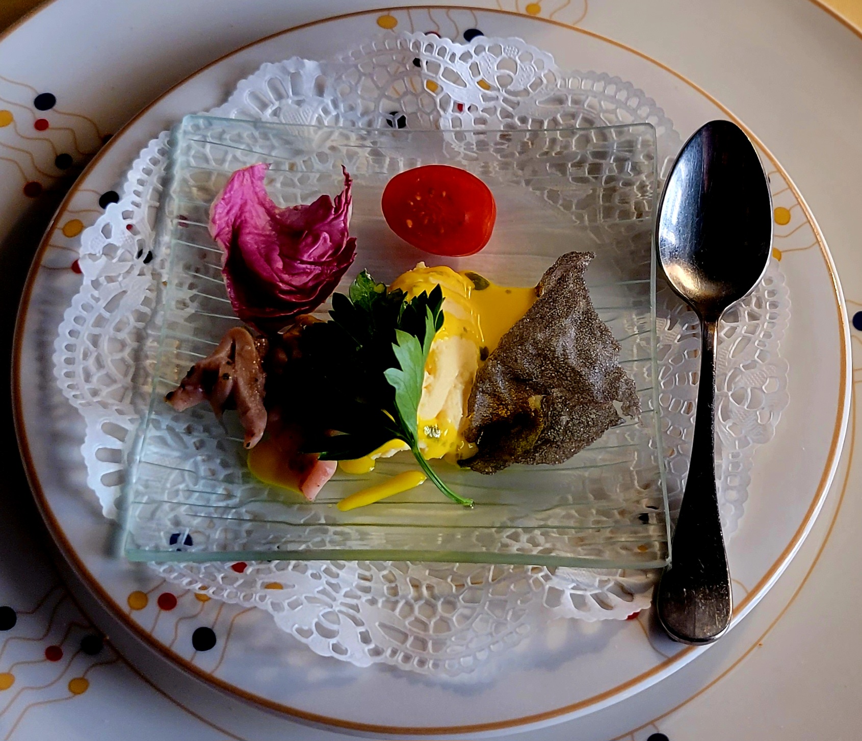 Un amuse-bouche trop salé. On peut mieux faire pour le canard au sang.