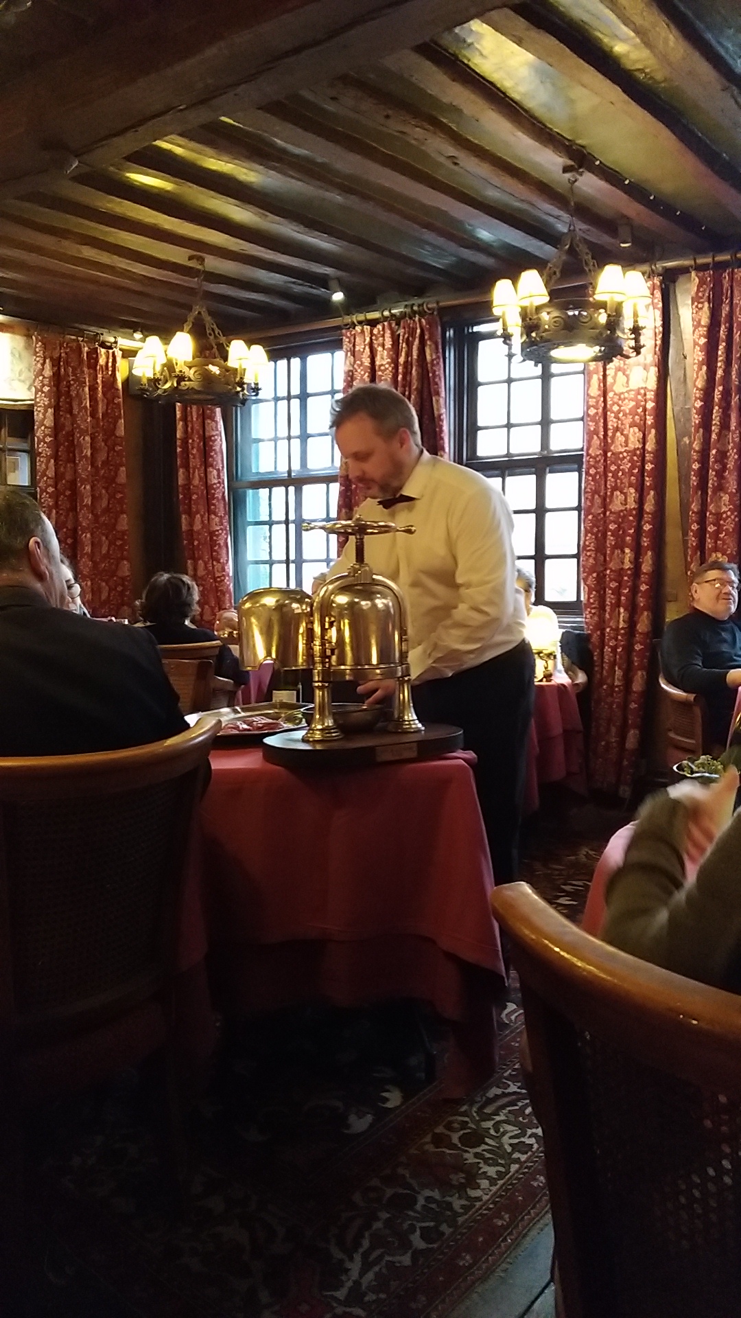 Restaurant prestigieux normand du 14ème siècle réputé pour son fameux canard au sang et des serveurs d une très grand classe et sympathiques à souhait