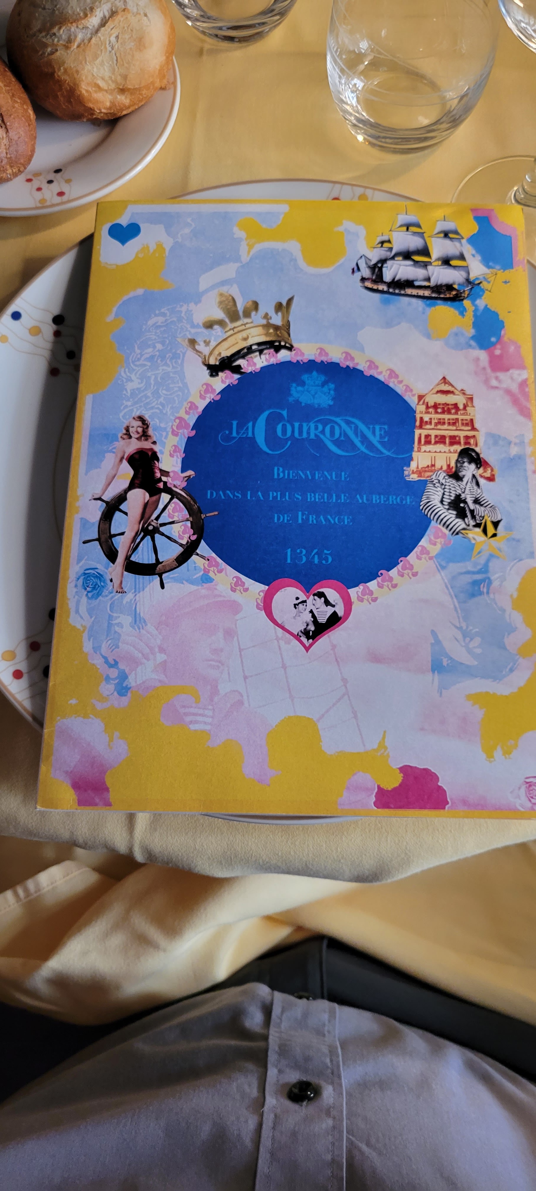 Nous avons passé un très bon moment à la couronne hier. La nourriture valait 5 étoiles et l'ambiance dans l'ancienne salle avec des photos signées est géniale. C'est peut-être un peu vieillot mais cela ajoute à l'ambiance de la plus ancienne auberge de France. Ils avaient une longue liste de vins et d'apéritifs et un menu en anglais. Certaines critiques mentionnent des souris qui traversent la pièce au 1 er étage. Nous avons vu une souris marcher continuellement dans la pièce pendant la dernière heure de notre visite. Cela semble être un problème du mois dernier et le restaurant en est conscient. Certaines personnes sont parties car elles trouvaient cela dérangeant/effrayant, ce qui est compréhensible. Cela n'a pas perturbé notre expérience. Certains invités en ont ri et ce fut une expérience intéressante. Même si les souris ne doivent pas se promener parmi les convives, il semble qu'elles proviennent des murs de l'ancien établissement. Le restaurant était propre et hygiénique autrement.