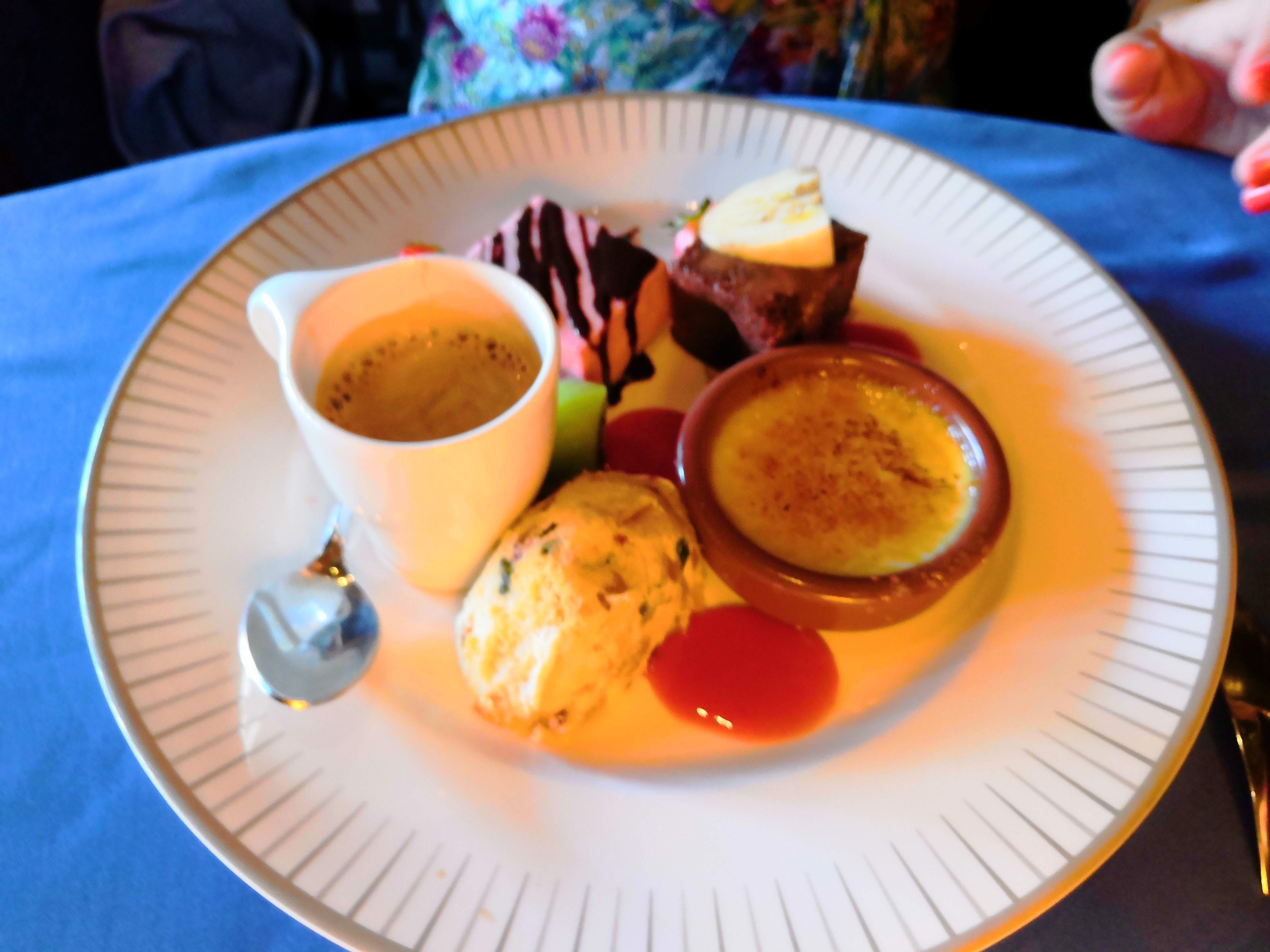 Très bon restaurant. Nous avons prix le menu la Normandie dans l'assiette avec entrée + plat + dessert affiché à 27 euros, compter un supplément de 5 euros si foie gras ou viande en plat. Le rissoto aux langoustines et noix de saint Jacques était délicieux. L'entrée et le dessert également. Très belles présentations des assiettes Bravo au chef cuisinier. Le cadre est ancien, on sent que c' est chargé d’histoire. Beaucoup de célébrités y sont passées, on peut voir de nombreuses photographies prises à la couronne John Kennedy, même la reine Elisabeth II y a pris un thé 🙂. Le service était très bien et le jeune homme de très bon conseil. Je recommande car c’était vraiment délicieux. Je n'ai pris qu'une seule photo car vu le standing je n'ai pas osé avant le dessert.