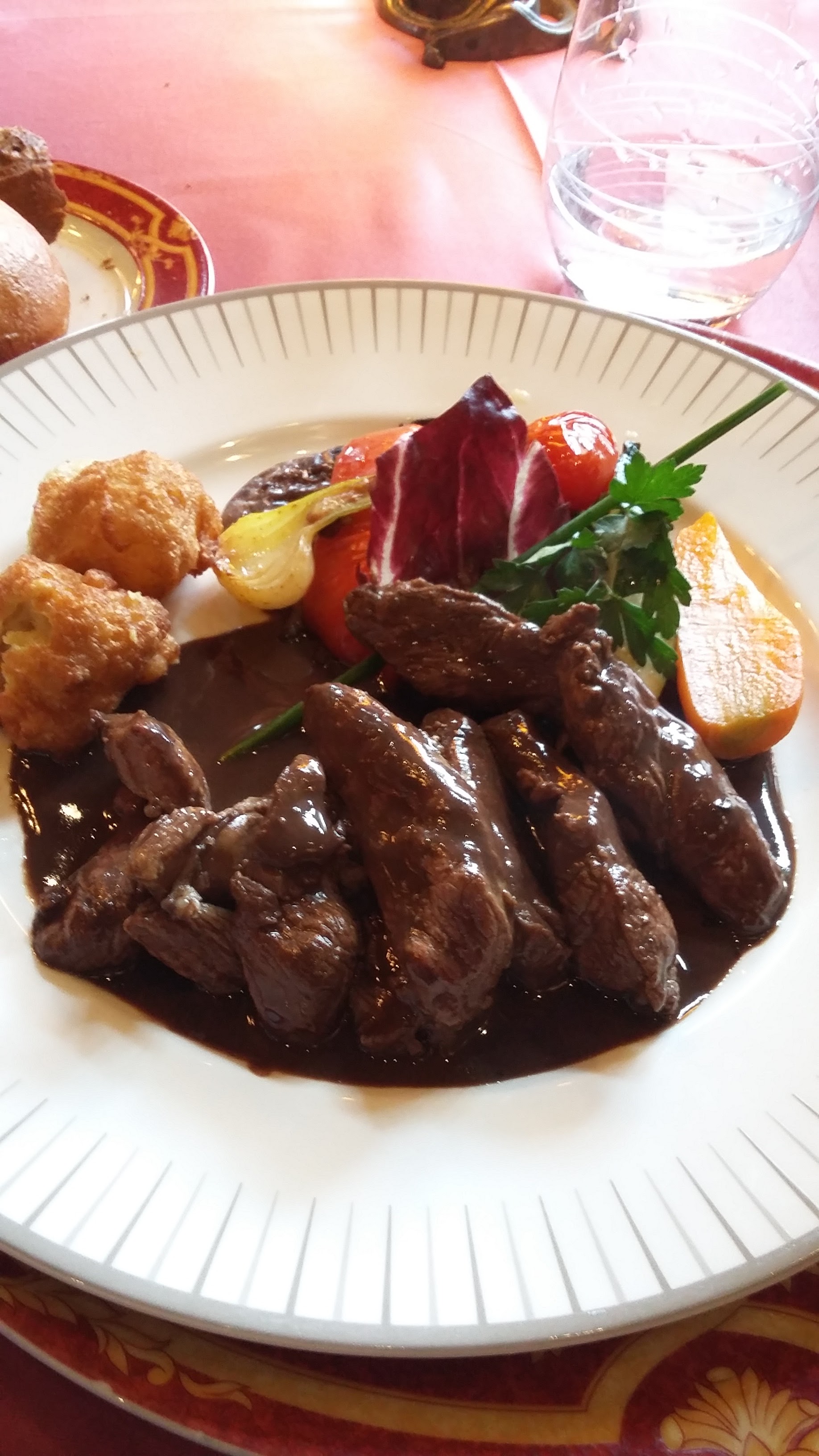 Trouver une table pour le déjeuner du jour de Noël peut être délicat. Nous n'avons pris aucun risque et avons réservé il y a quelques mois. C'est sûr que c'est vieux ! Depuis 1345, ils diffusent libéralement. Classique d'une manière légèrement poussiéreuse. Le menu fixe contenait plein de bonnes choses. Foie gras, fromage en pâtisserie et miel, nous sommes deux vedettes. Pour mon palais, c'était en grande partie trop lourd, trop traditionnel. Cela vaut la peine de découvrir les chambres et l'atmosphère légèrement pompeuse.