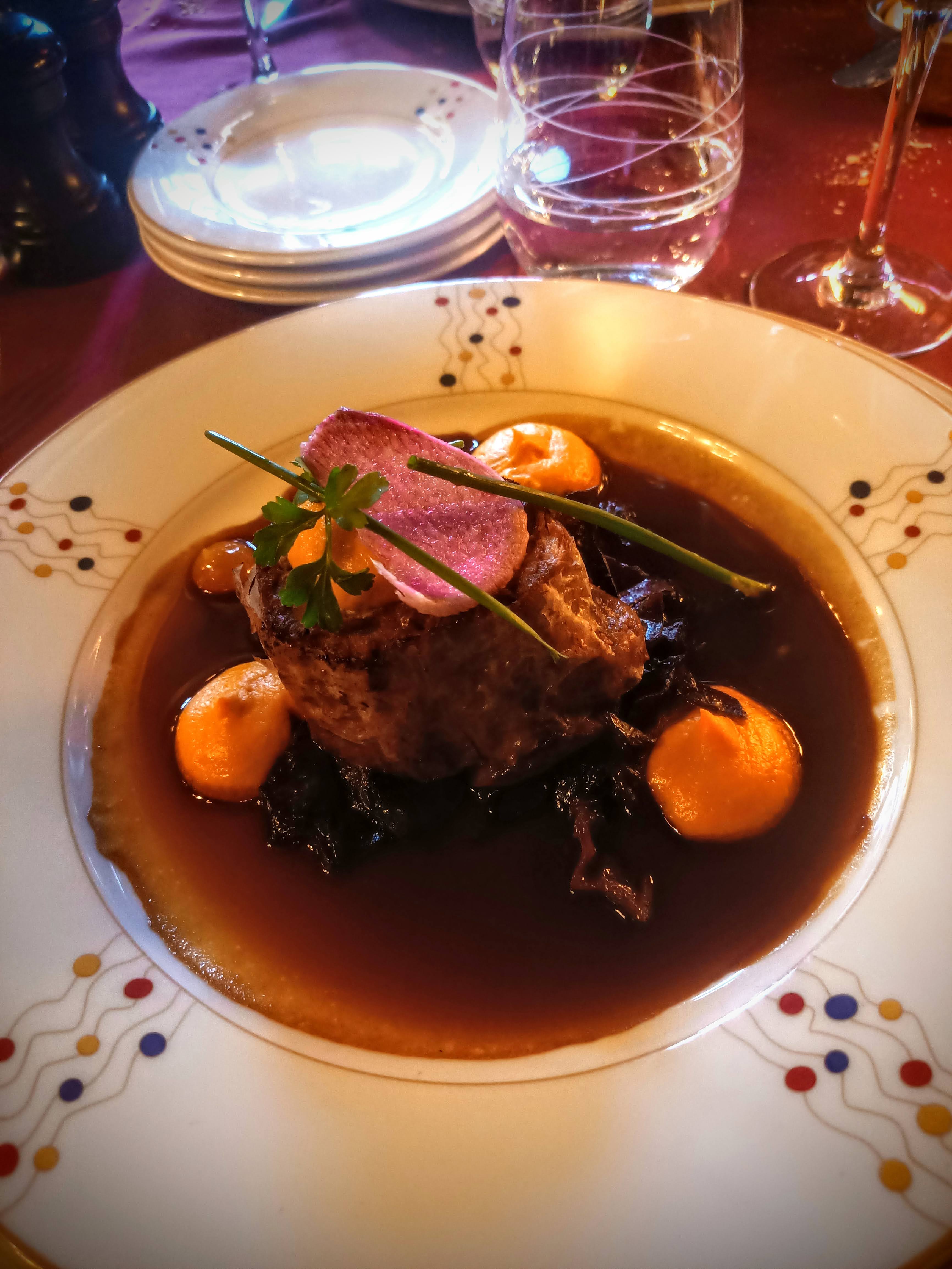 Des années, ou plutôt devrais je dire, des siècles plus tard ce restaurant n’a manifestement pas pris une seule ride. Dès l’entrée on est d’emblée immergé dans un lieu plein d’histoire et de charme, hors du temps, n’empêchant pas pour autant de s’y sentir bien rapidement tant l’accueil qui nous a été réservé était chaleureux. Les plats étaient délicieux, à la fois raffinés, gourmands, et généreux, avec des petites touches normandes qui nous rappellent le patrimoine culinaire remarquable de cette région. C’était une expérience sensorielle du début à la fin. Je ne se sais pas si j’aurai l’occasion de revenir et quelque part tant mieux, ça préservera l’unicité de cette jolie parenthèse enchantée lors d’un bref passage à Rouen.