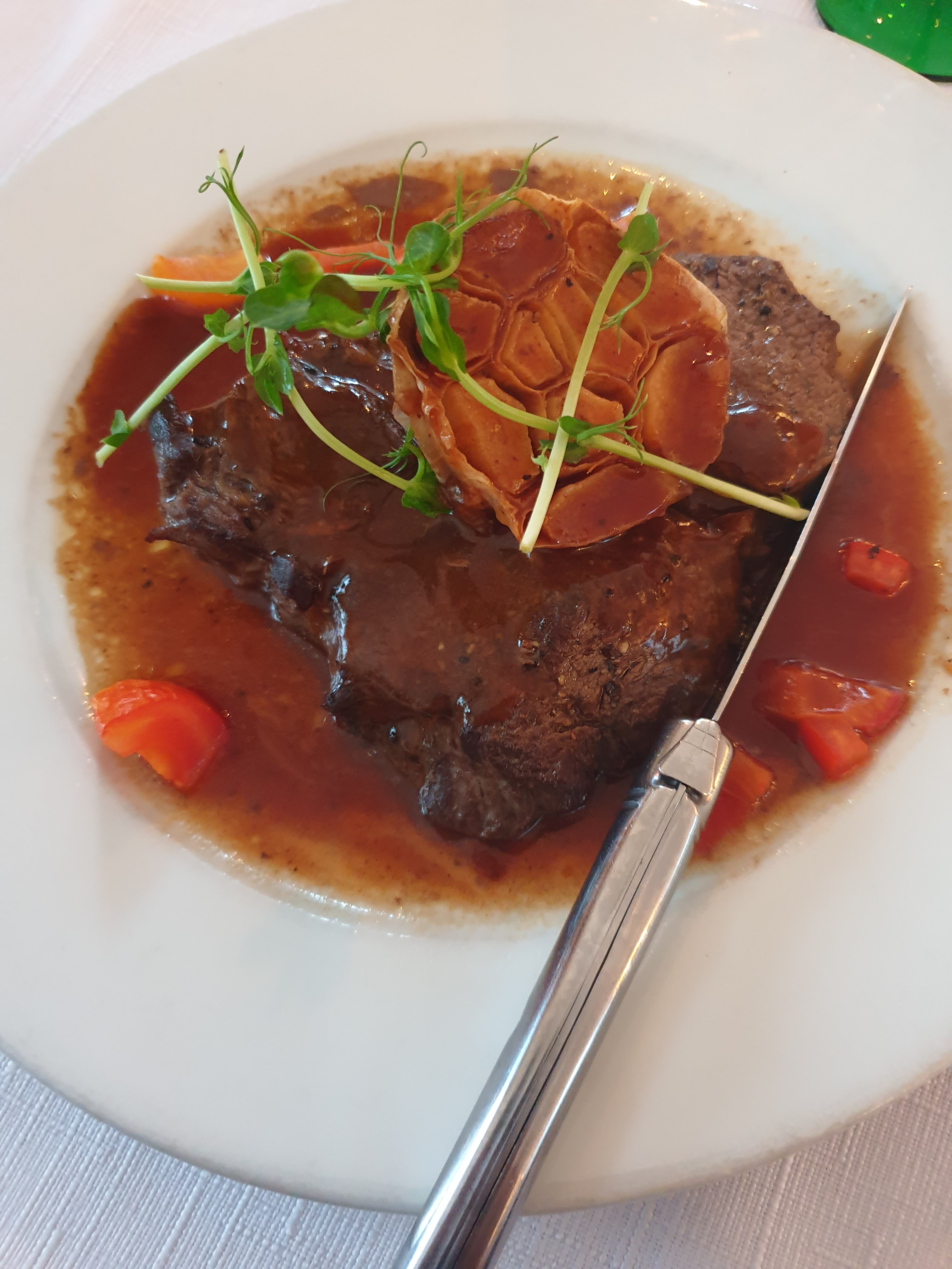 Belle auberge avec une bonne cuisine. Avant, c'était 4 étoiles, maintenant c'est plutôt 3 étoiles. Que le vieil esprit soit ravivé. Le service pourrait également être amélioré et un peu plus agréable. La carte des vins est vaste mais présente généralement des vins plus petits ou des millésimes médiocres. Pour un banquet, il devrait également y avoir quelques vrais vins d'initiés au menu.
