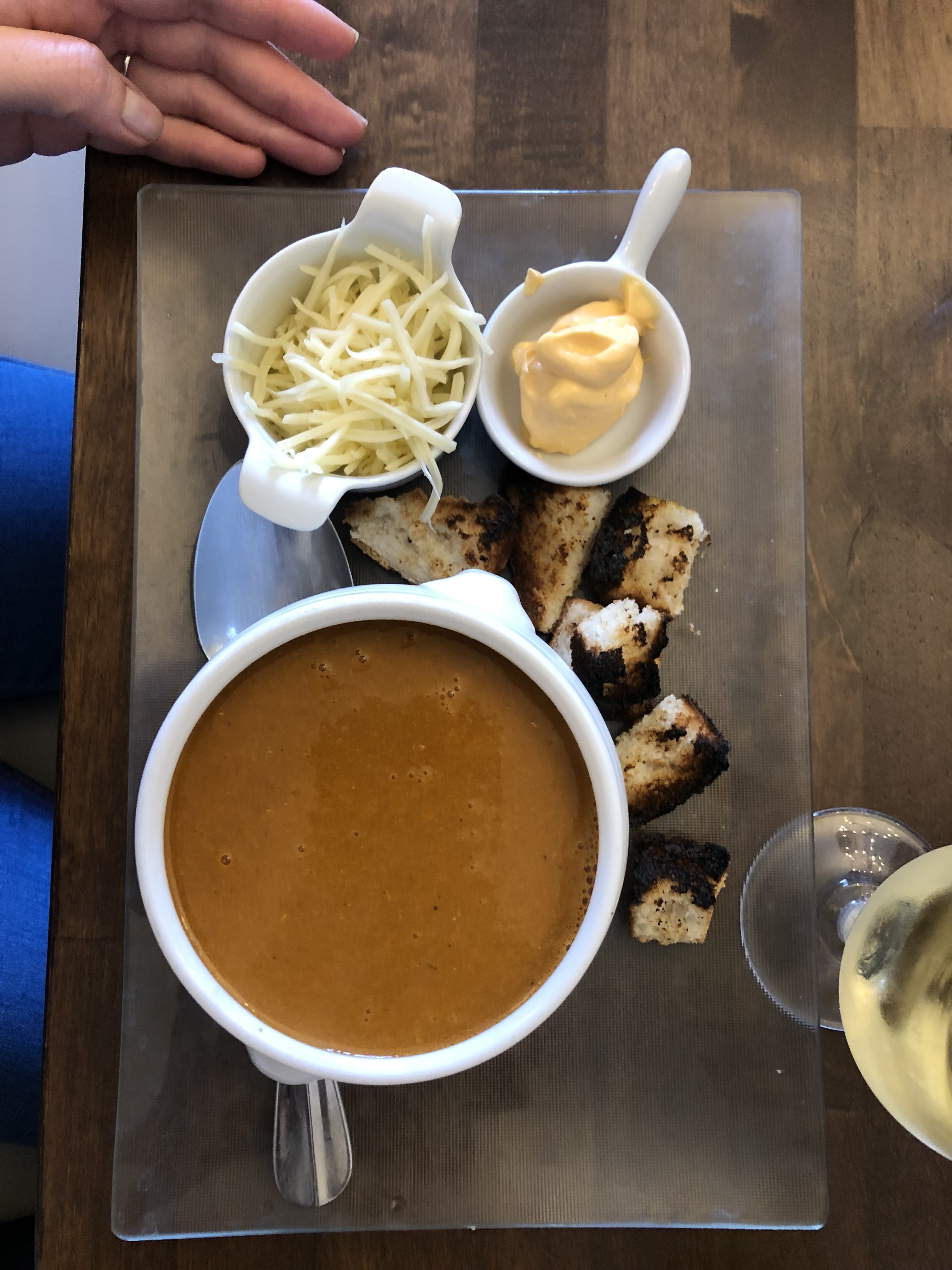 Soupe de poissons excellente, le magret de canard bon mais sans plus. Un service vraiment top !