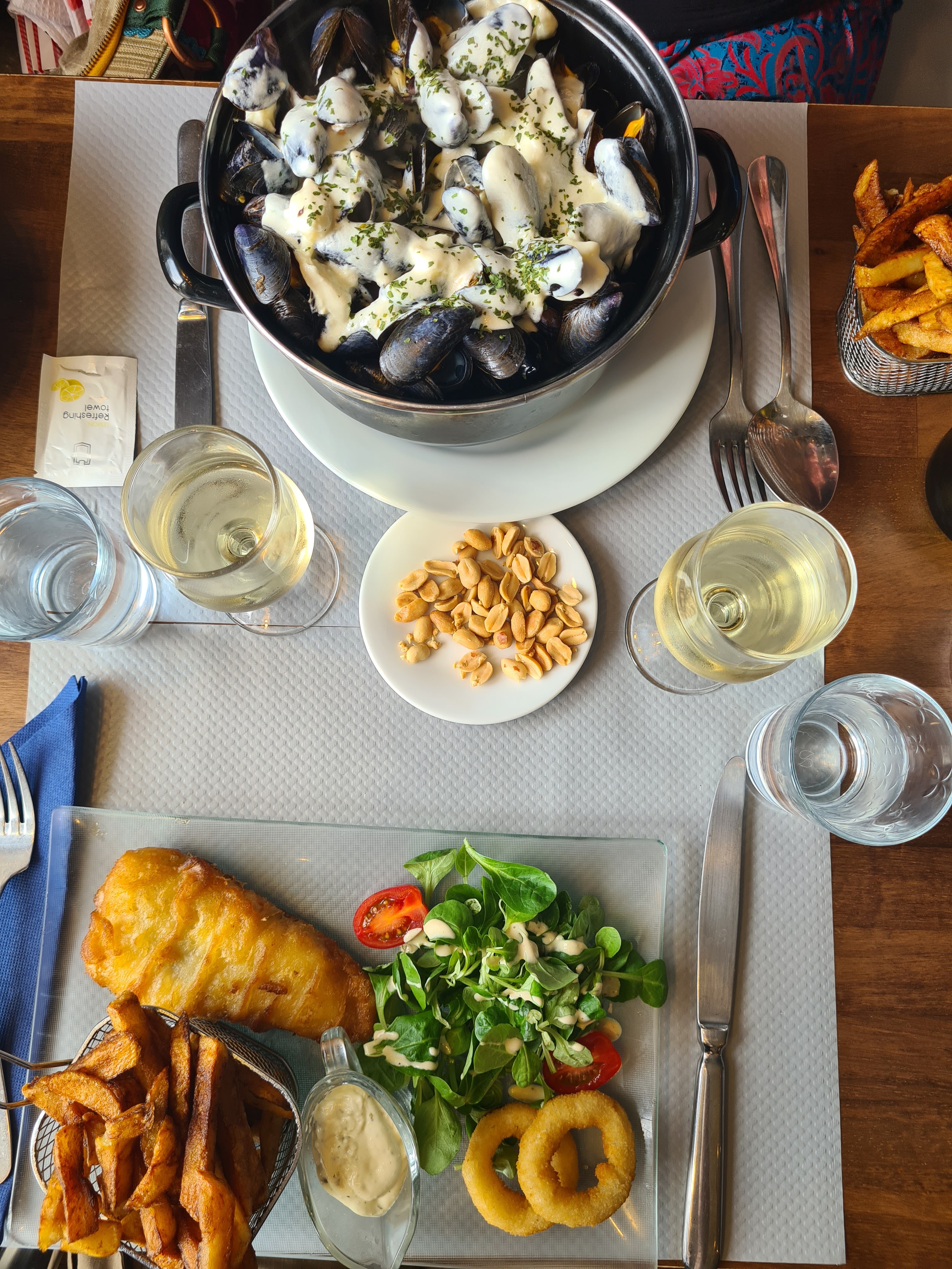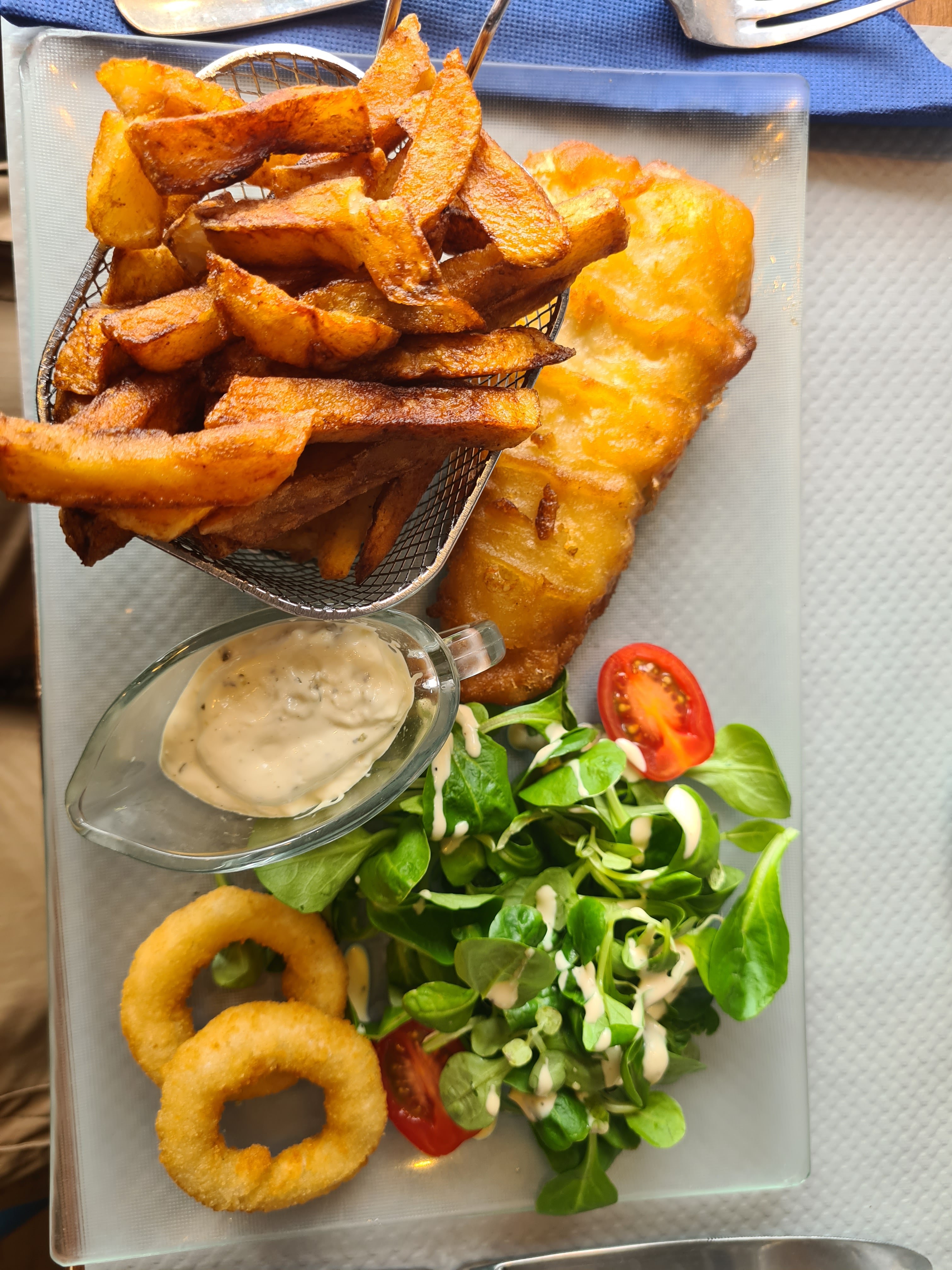 Nous avons mangé un fish and chips excellent et des moules roquefort super bonnes également. Nous avons été servi rapidement et le serveur était très serviable. Malheureusement nous avons eu une table assez bruyante à côté de nous à l'intérieur et c'est assez petit. En résumé, je recommande sans hésiter pour passer un bon repas.
