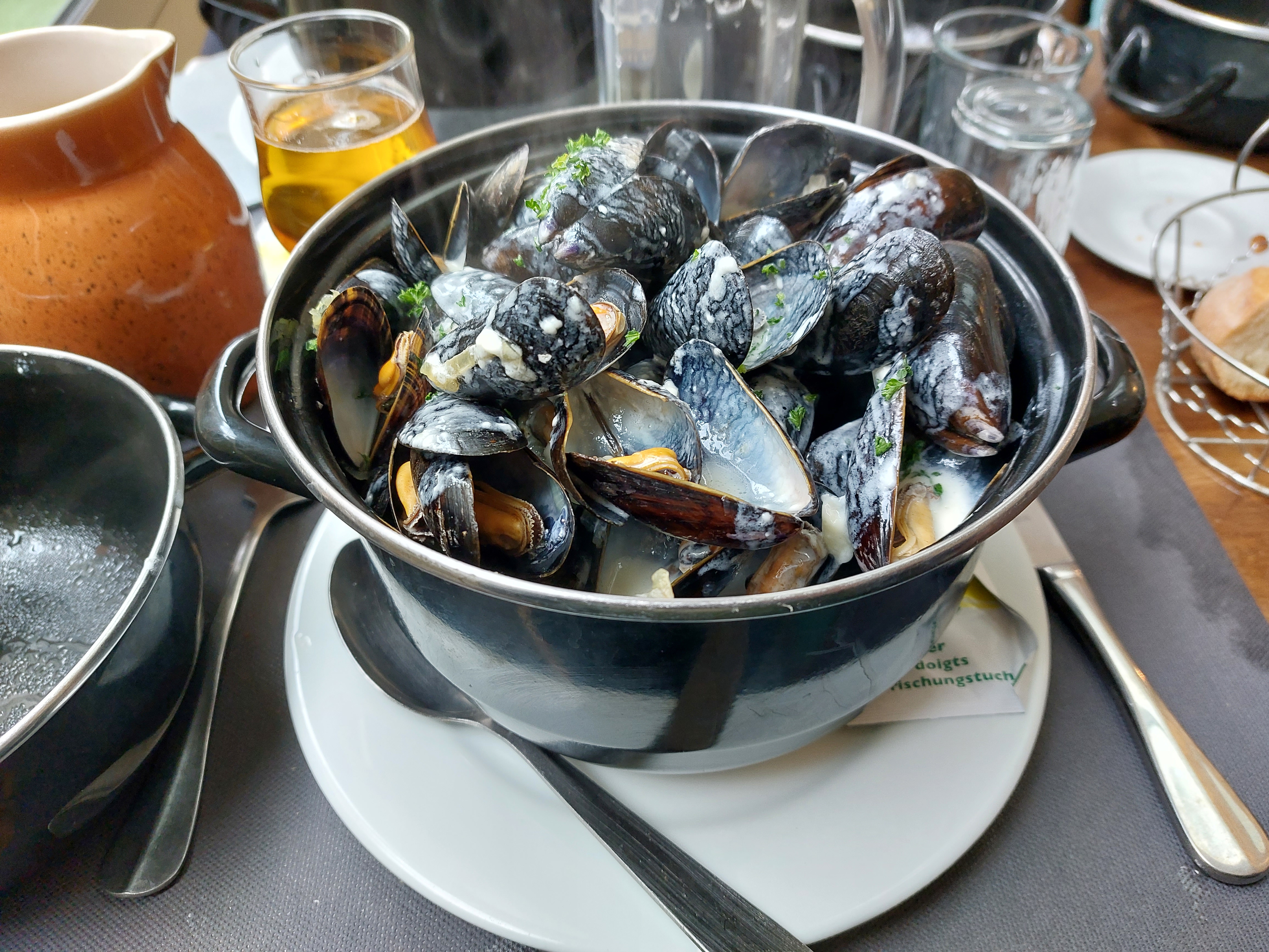 Moules à volonté ! Elles étaient très bonnes. Il y avait beaucoup de monde mais vraiment serveurs très agréables et souriants ! Nous avons bien mangés et nous avons été très bien reçus. Dommage il n'y avait plus de coupe meringuée... (nous avions réservé pour 13h30 et le temps de manger les entrées et les plats il n'y en avait plus ! Fin de service ça se comprend.)