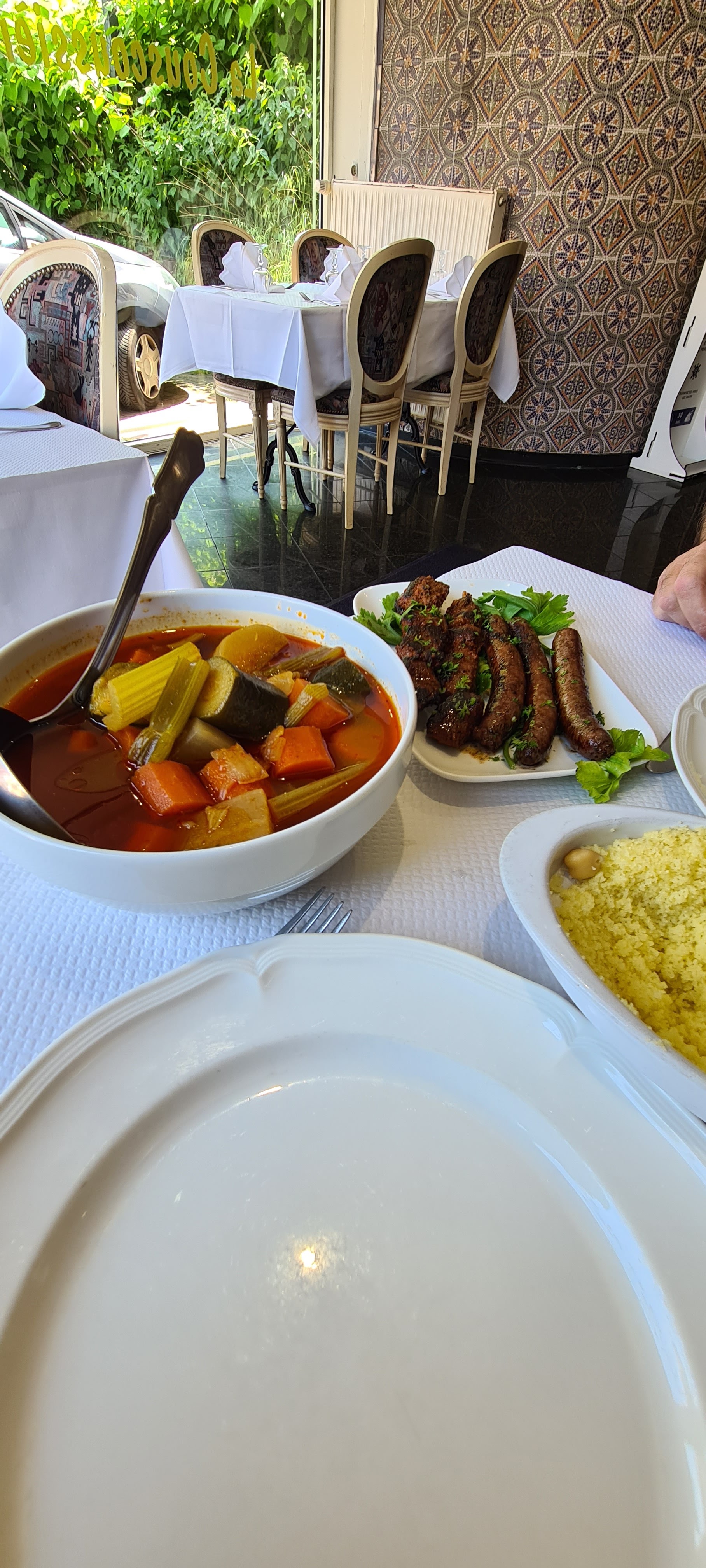Excellent couscous, plat généreux, service rapide et beau cadre.