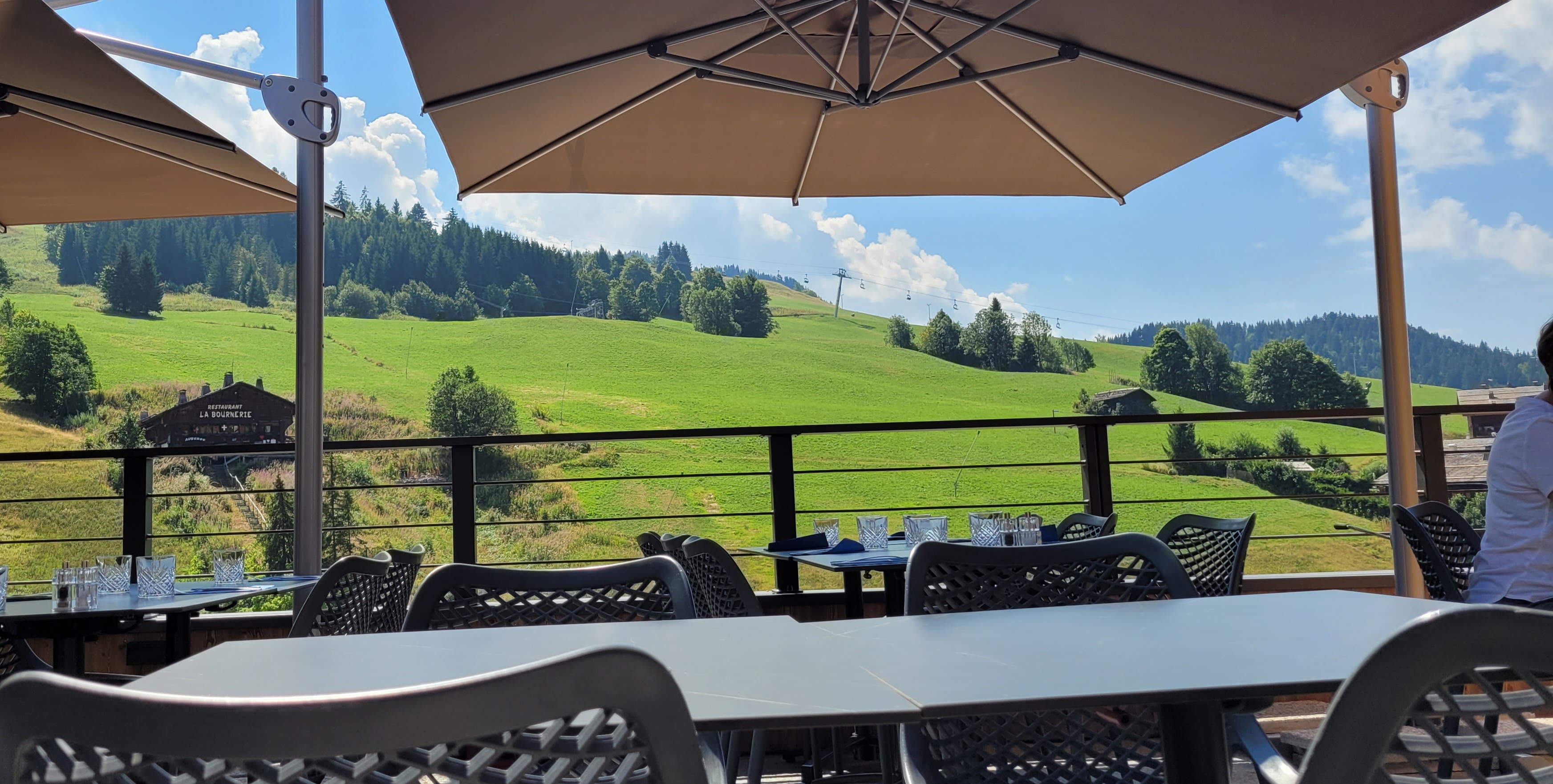 De bons plats, un service efficace, une belle vue sur les pistes, ça me va, même par une journée pluvieuse.