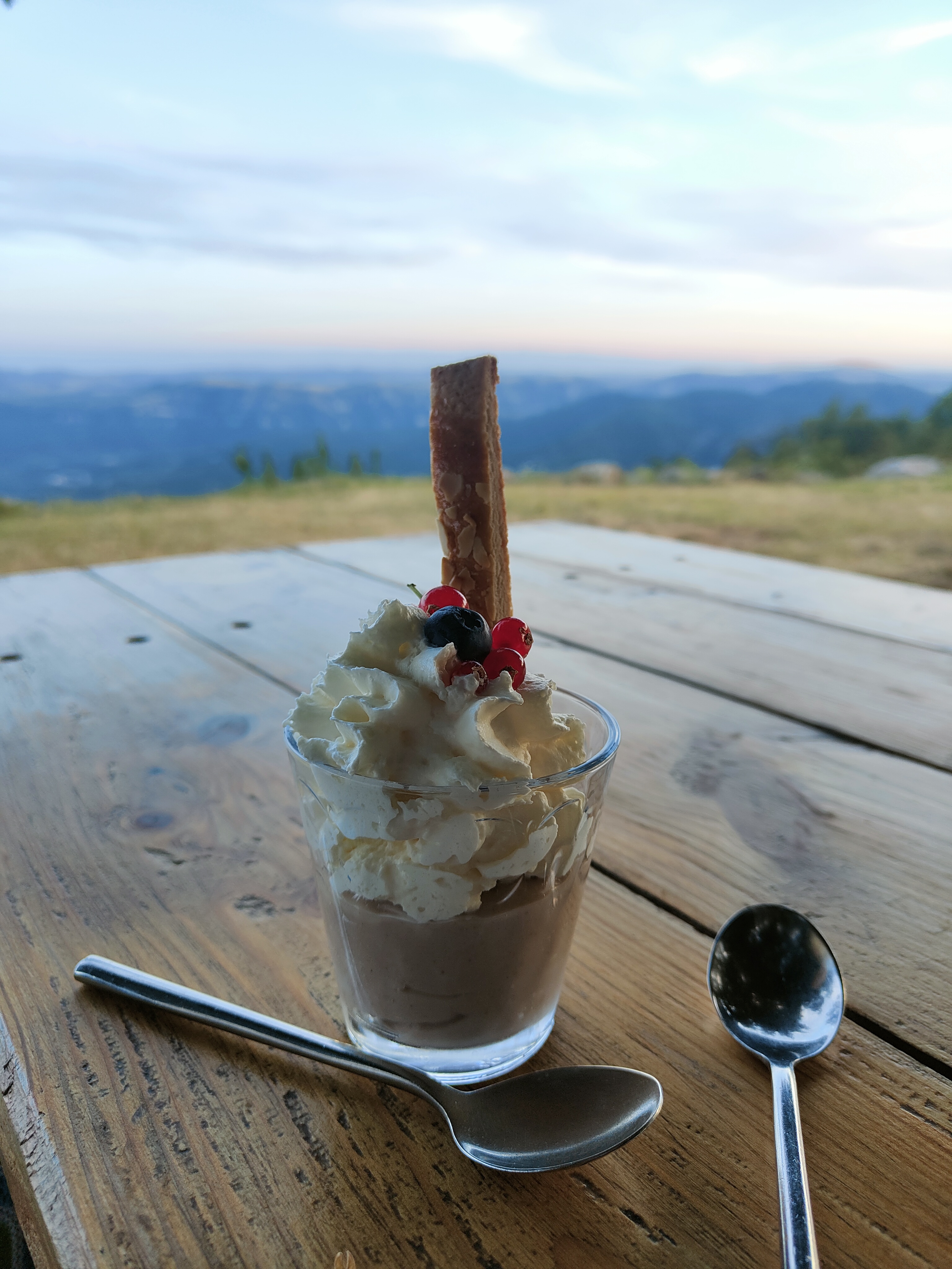 une journée grise , brouillard , petite ondée...en montant vers le lac des pises. une halte repas au restaurant de la cravate...on se laisse tenter par une omelette aux cèpes à partager en entrée..et ensuite des grillades d'agneau au feu de bois..accompagnement frites...un petit kir crème de chataignes et une dessert truc chataignes 🤣 (crème de marron chantilly...et un petit café...un repas très sympa en agréable compagnie (😉) et un patron/serveur très sympathique..la cravate est une halte restauration à ne pas rater..si on aime la simplicité et un panorama très sympa. nul doute...on y retourne sur le chemin de l'aigoual. un gros plus...le patron connait les contraintes du sans gluten...frites et le truc de chataignes sont sans gluten. bravo
