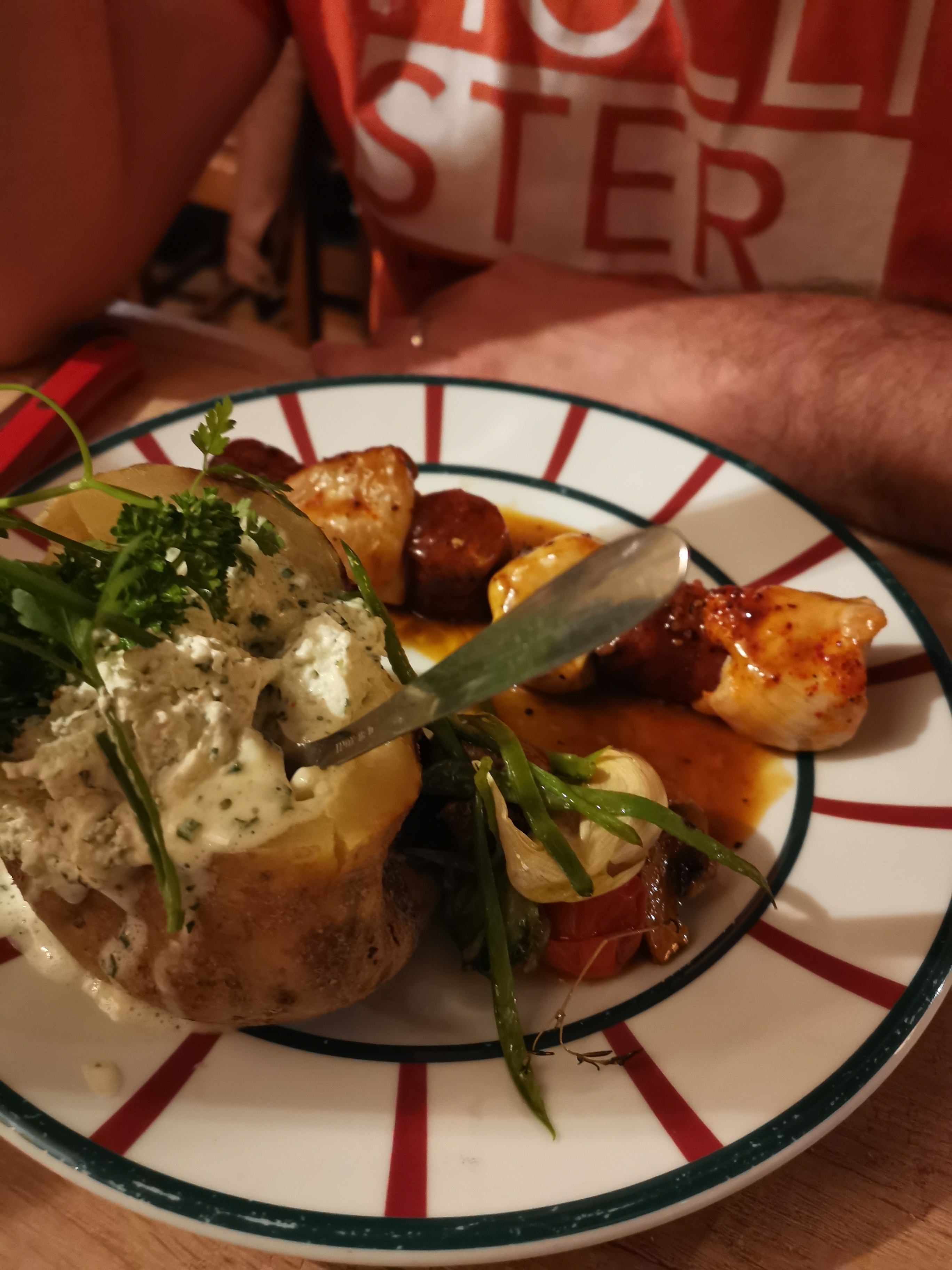 Tout est absolument parfait ! Cette touche basque dans les alpes est une réussite. Pour ma part j’ai testée « La basquiflette » qui est une revisite de la tartiflette ainsi que le café gourmand. Que ce soit mon plat ou mon dessert, c’est absolument divin ! Pensez à réserver à l’avance si vous voulez y aller car forcément une aussi bonne cuisine ça a du succès !