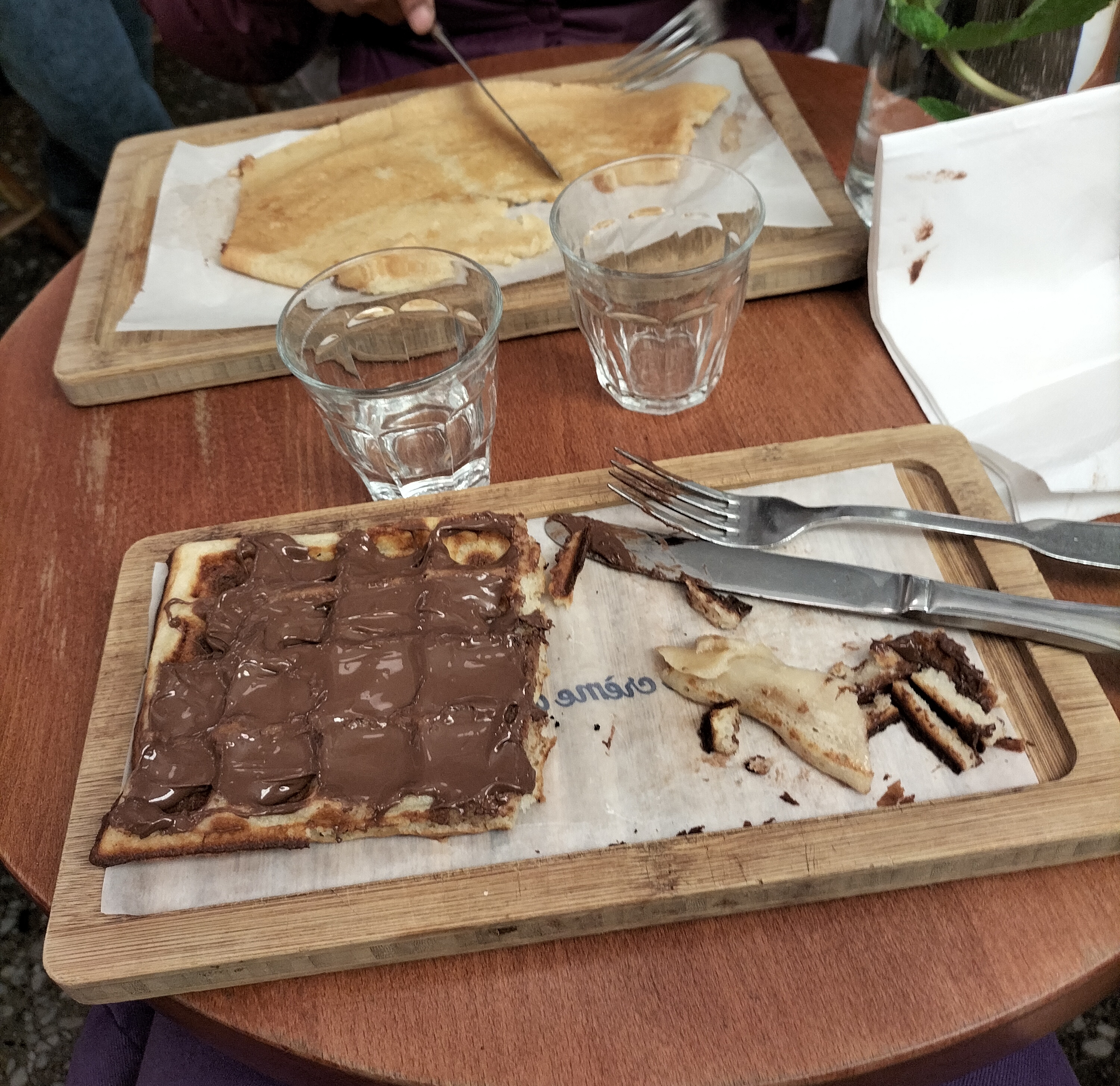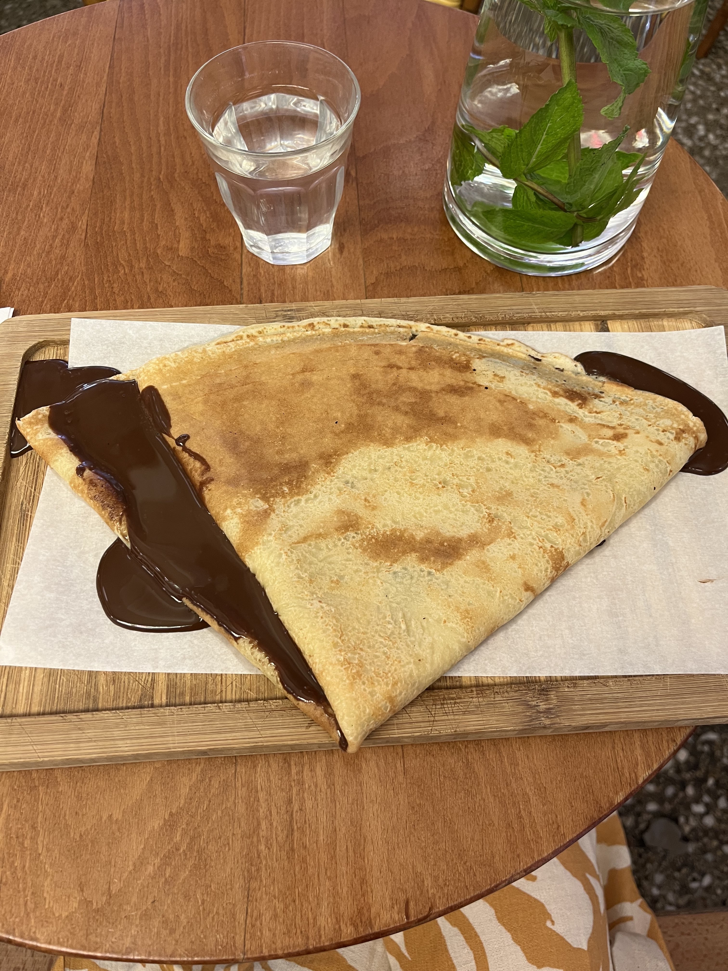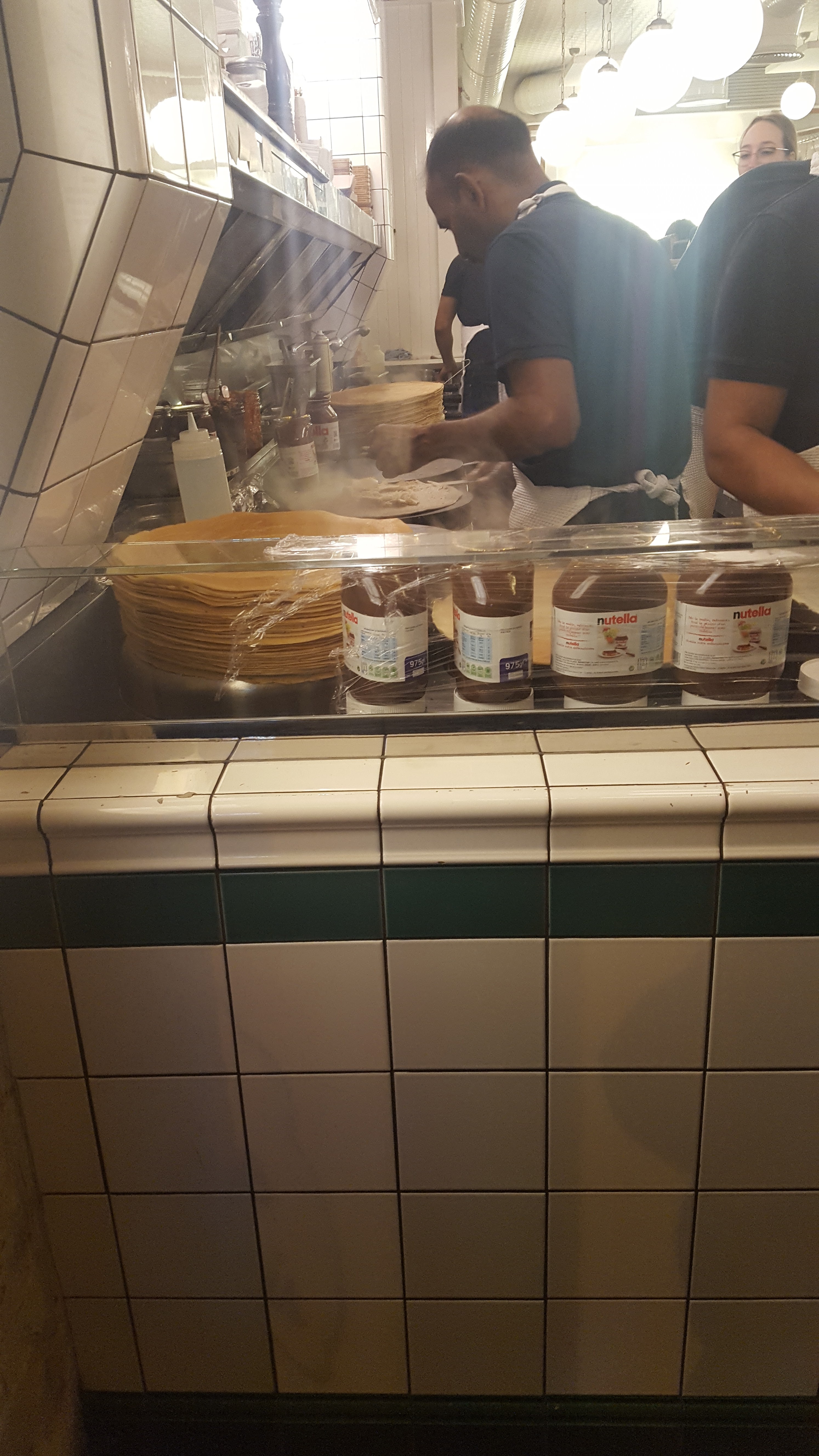Depuis le temps que je passais devant, j'ai finalement pris le temps de m'arrêter. Meilleure crêpe dégustée depuis longtemps. La pâte était incroyablement épaisse et moelleuse, avec une généreuse couche de Nutella. Un délice.