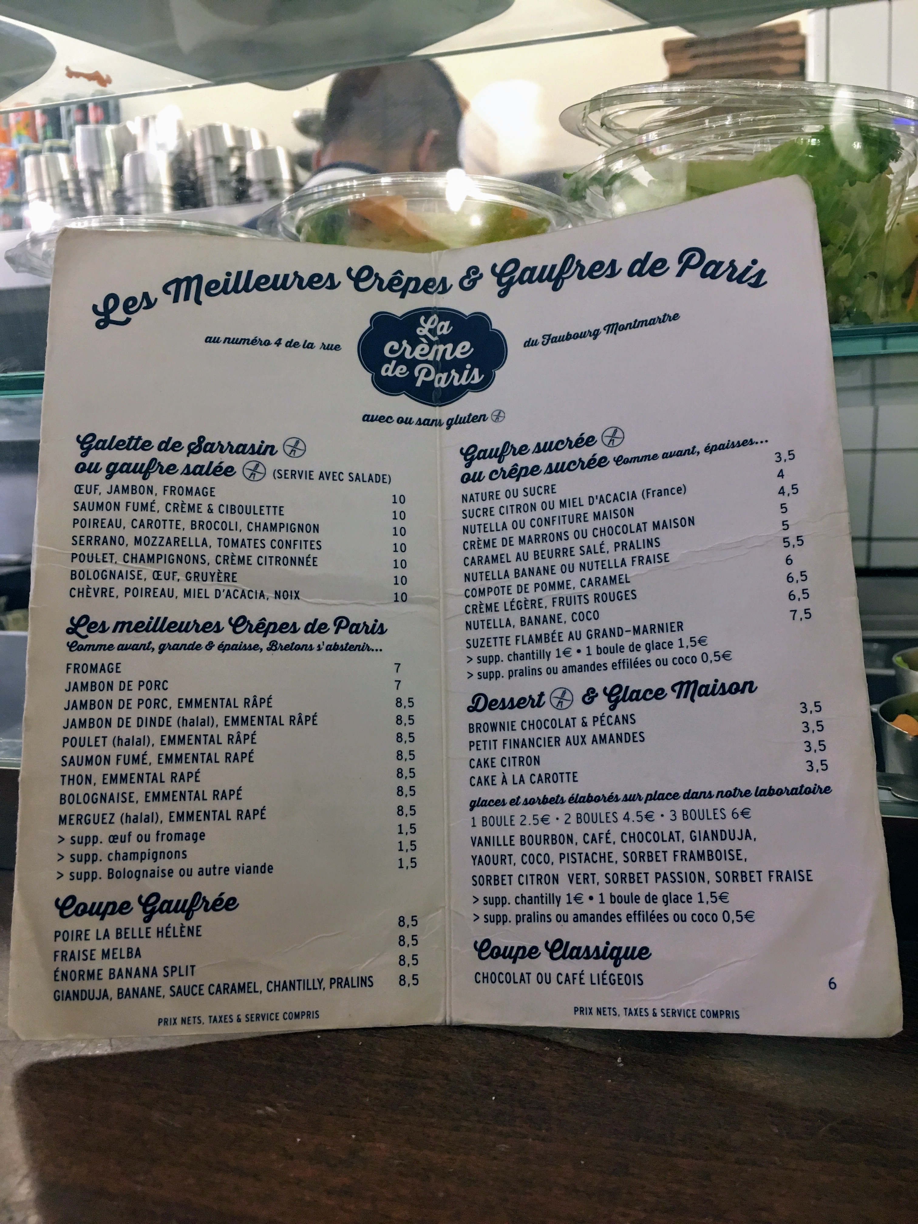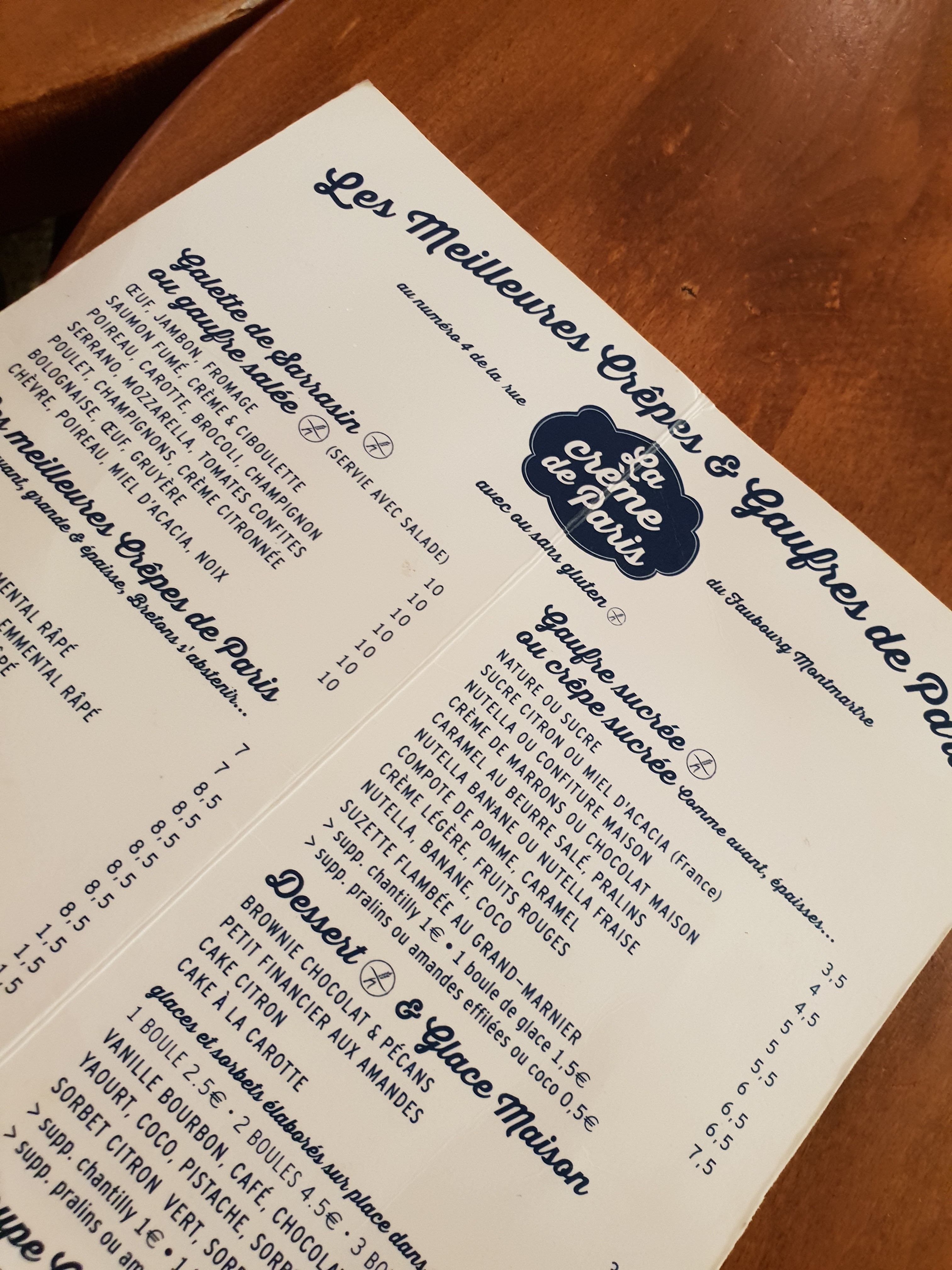 Situé juste en face du bouillon chartier c'est l'adresse parfaite dans Paris pour se faire un petit dessert sympa et pas trop cher ! J'adore les crêpes et les gaufres (petite préférence pour ces dernières)! Le lieu est de plus en plus connu donc il y a souvent de la queue pour s'installer mais les équipes en salle font du mieux qu'elles peuvent. Petit bémol, lors de mon dernier passage canicule et affluence oblige nous étions installés à côté des toilettes où un horrible courant d'air nous soufflait dessus, ce n'était des plus agréable. Le midi il semblerait qu'ils proposent un menu complet pour 10€, à tester pour ceux qui sont dans le quartier aux heures du déjeuner !