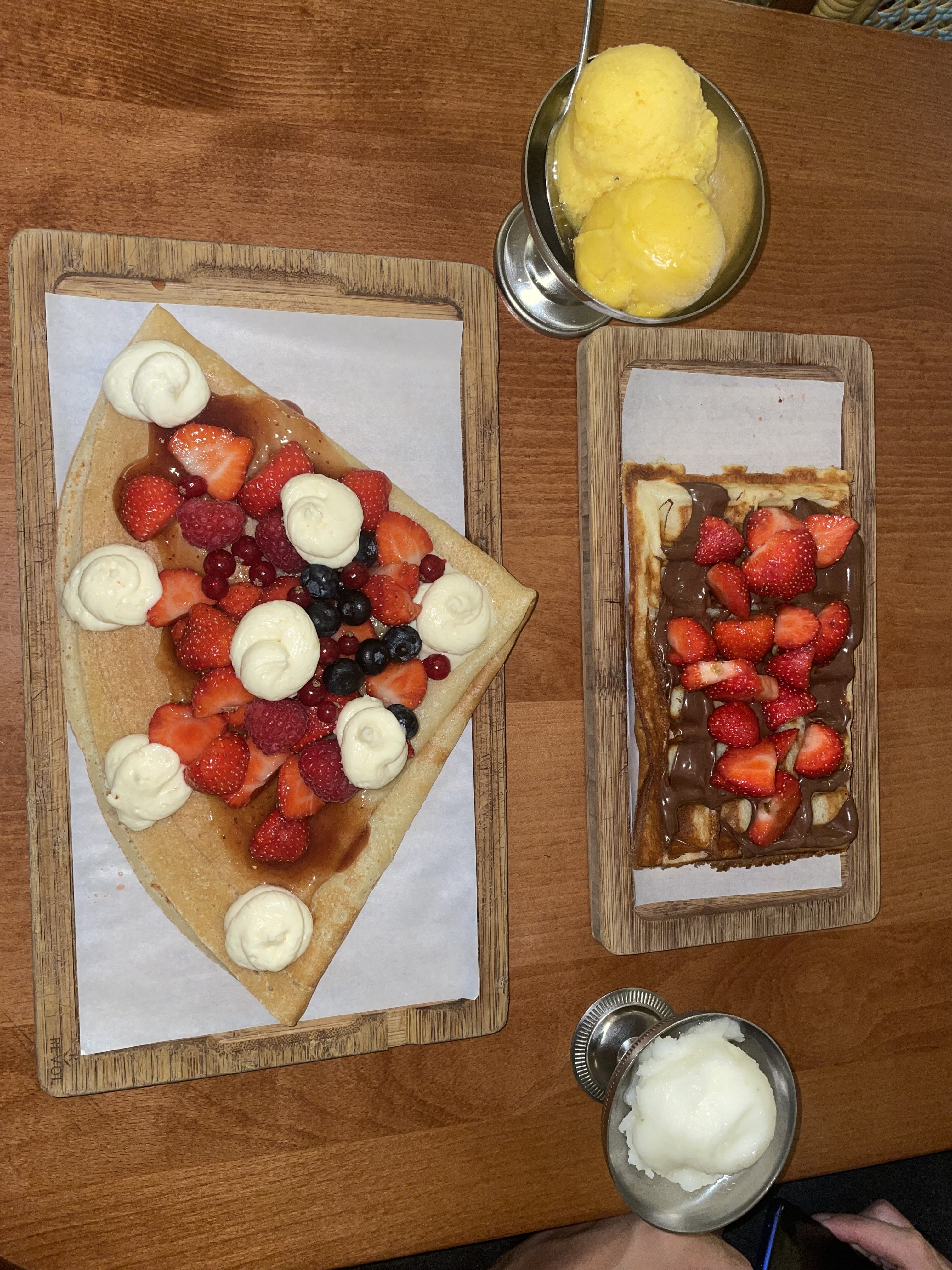 3eme visite toujours bon et généreux. Préférence pour les crêpes, les gaufres étant trop cuites à mon gout. Sinon endroit convivial il y a toujours du monde. Dommage que les tables soient très proche les unes des autres pr « l’intimité » bof, mais malheureusement il faut rentabiliser l’espace vu l’affluence c’est compréhensible. Bon courage à tous ceux qui y boss.