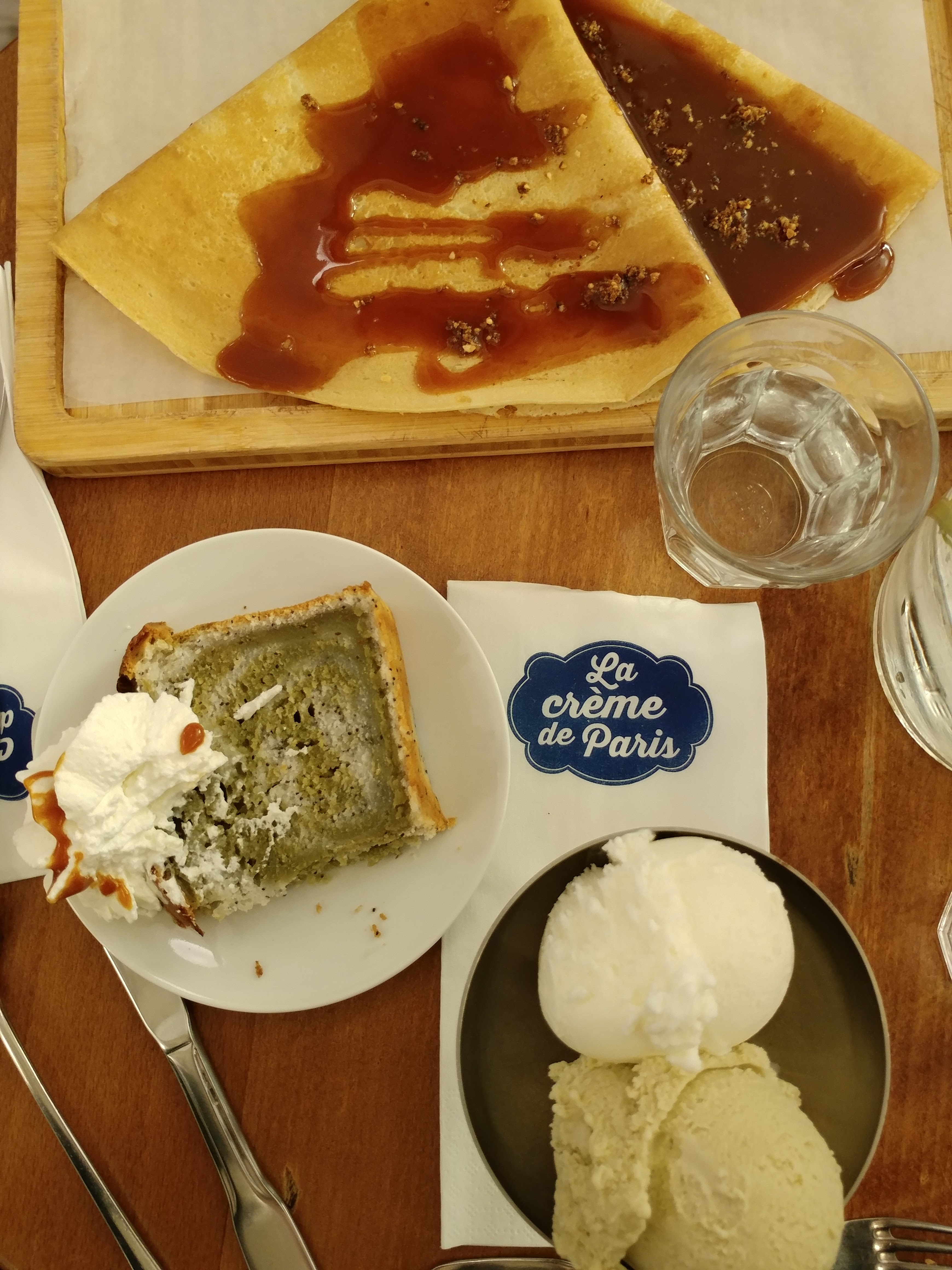 Bonne expérience. Le service est rapide et les tarifs très corrects compte tenu du quartier. L'ambiance est plûtot bruyante. Les crêpes sont bonnes ( bien épaisses) ils proposent dailleurs un caramel au beurre salé délicieux ! Le cake matcha coco pavot est très bon ( juste étonnant au départ car peu sucré) Les glaces sont correctes.