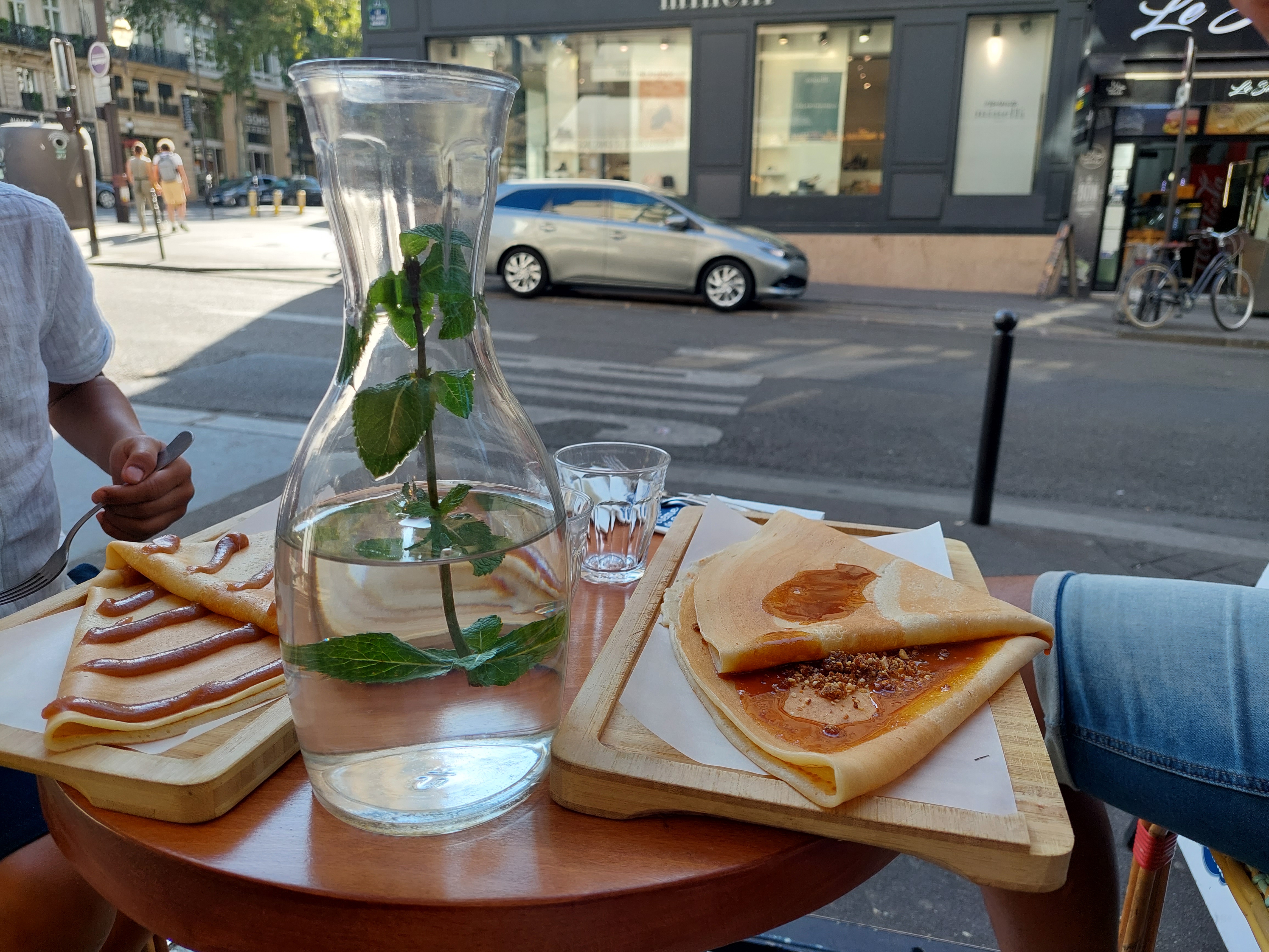 J'ai pu manger une crêpe très banale ! On m'avait vanté les qualités de cette crêperie en me disant que c'était la meilleure de Paris, mais rien n'est si sûr ! La crêpe était très épaisse un arrière goût d'orange, Mais bon c'était bon tout de même ! Par ailleurs, on s'est senti un peu observé par les serveurs pendant qu'on mangeait, c'était opressant ! De plus, la distanciation n'etait pas très bien respectée.