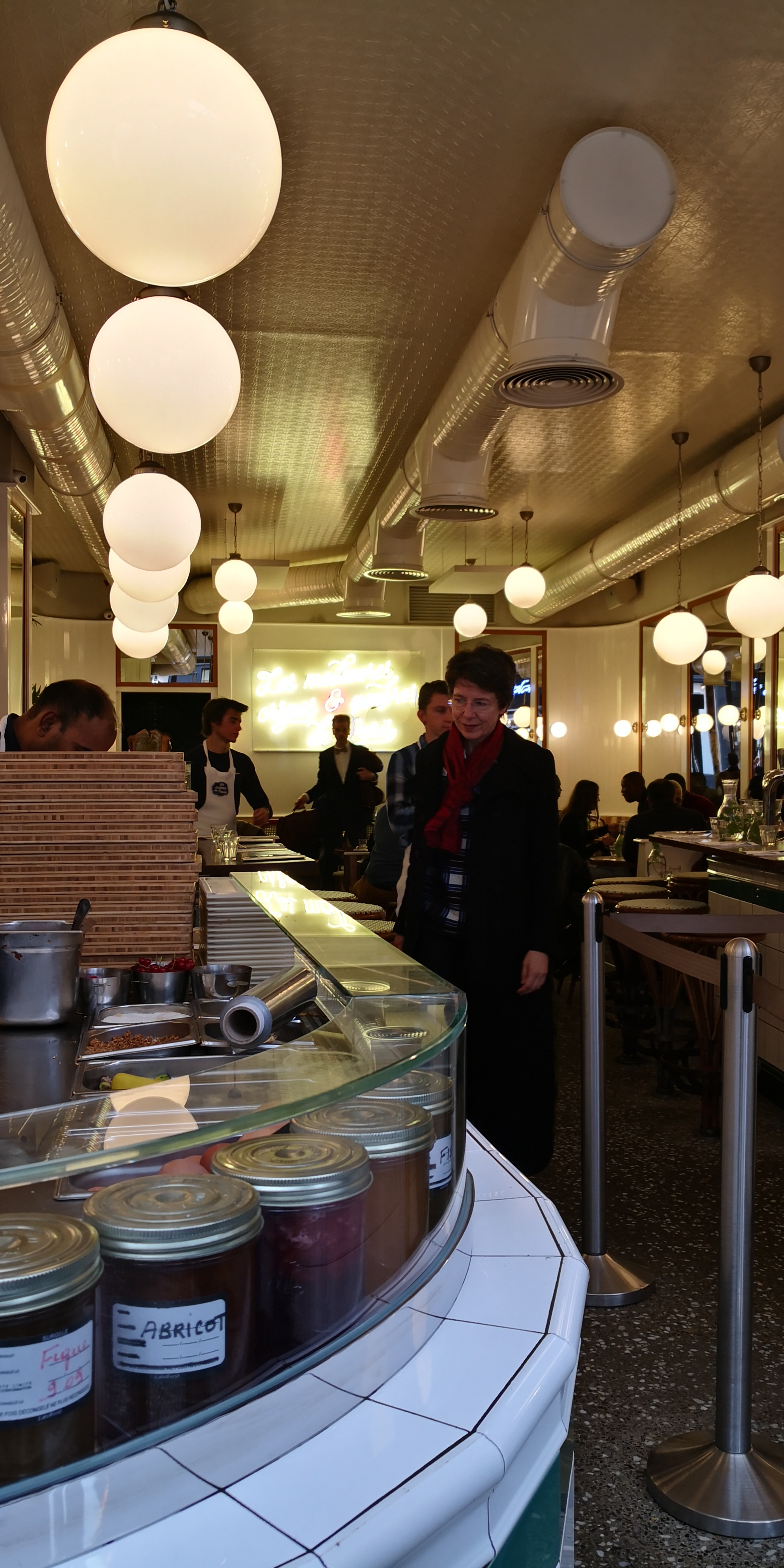 C'est simple : des gaufres et des crêpes en taille XXL et de bonne qualité. Le cadre plaira aux touristes et séduira le Parisien, la magie du carrelage blanc et des néons pastels. Les portions sont généreuses et la qualité au rendez vous. Pour les plus tatillons comme moi : vous pourrez remplacer le Nutella par du chocolat maison.