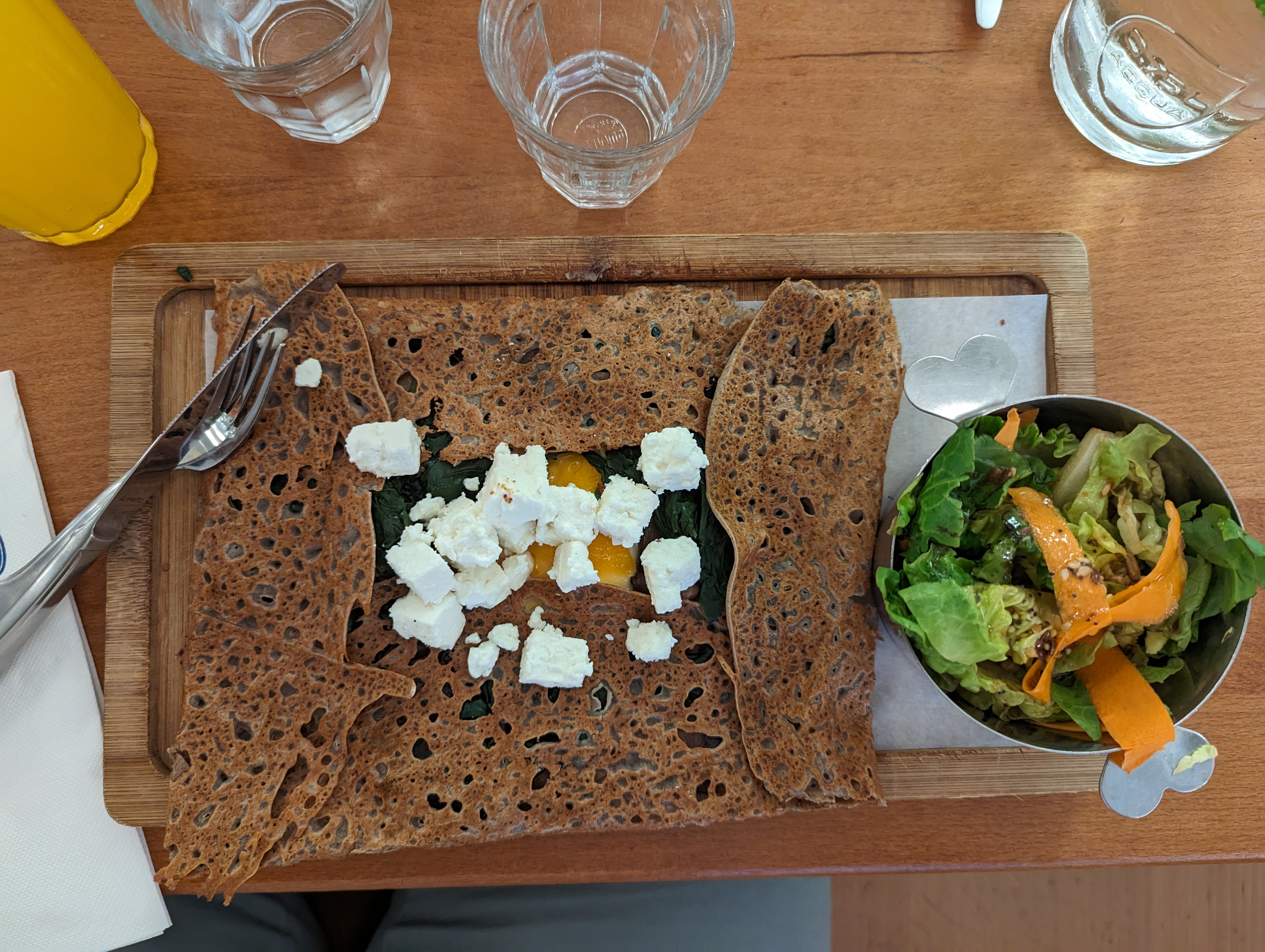 On a beaucoup attendu pour être installé alors qu'il y avait plusieurs place vide. Endroit assez bruyant du fait que les personnes y viennent en famille avec enfants. Les crêpes sont bonne et copieuse les smoothies sont épaix et pas trop sucrée. C'était sympa