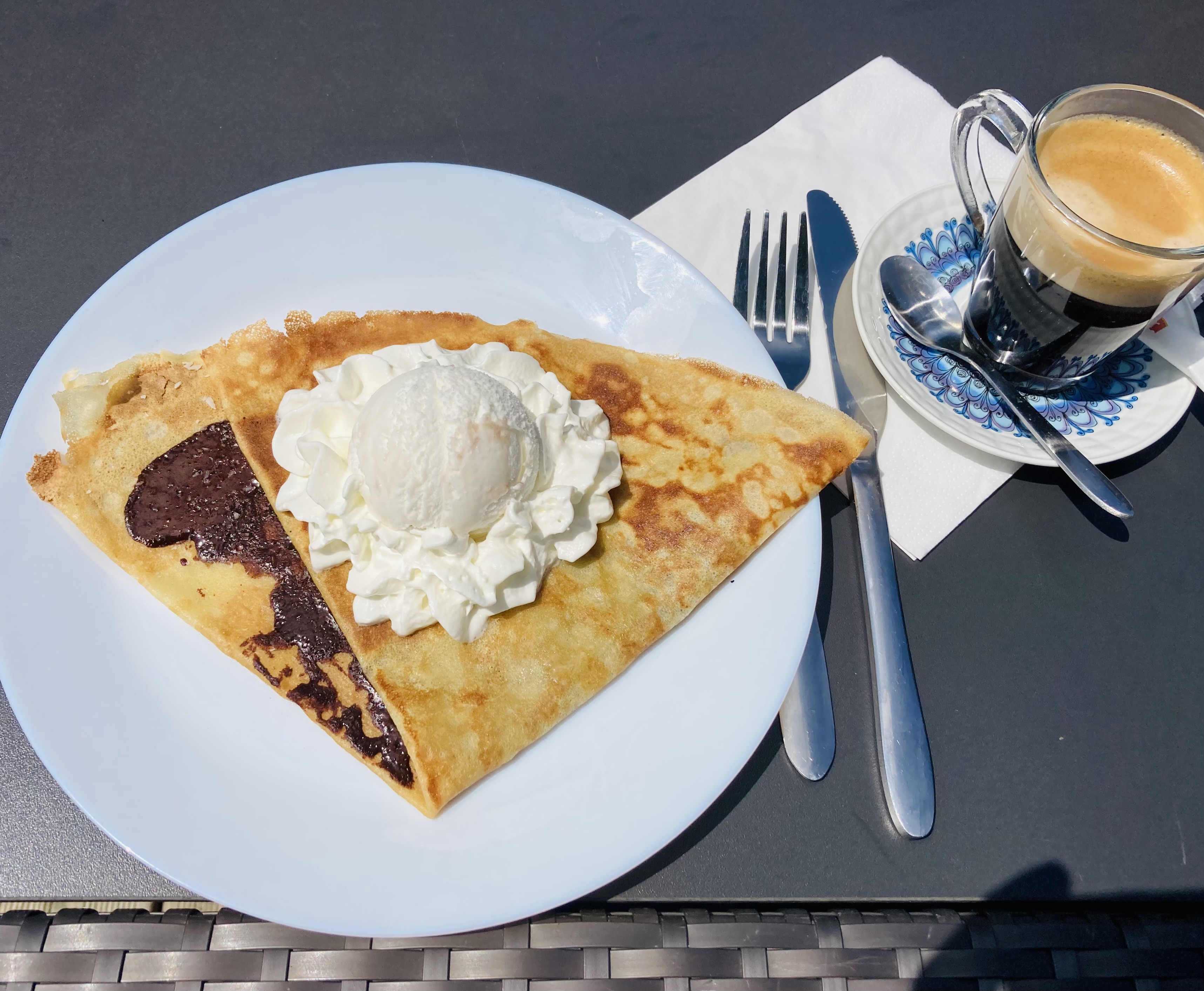 De bonnes crêpes à des prix raisonnables, un grand choix de boissons, une belle terrasse avec des tables au soleil ou à l’ombre des parasols, une équipe sympa et chaleureuse, une aire de jeux pour les enfants, le tout dans un écrin de verdure en bord d’Hyères. Bref, le bonheur des choses simples et bien faites.