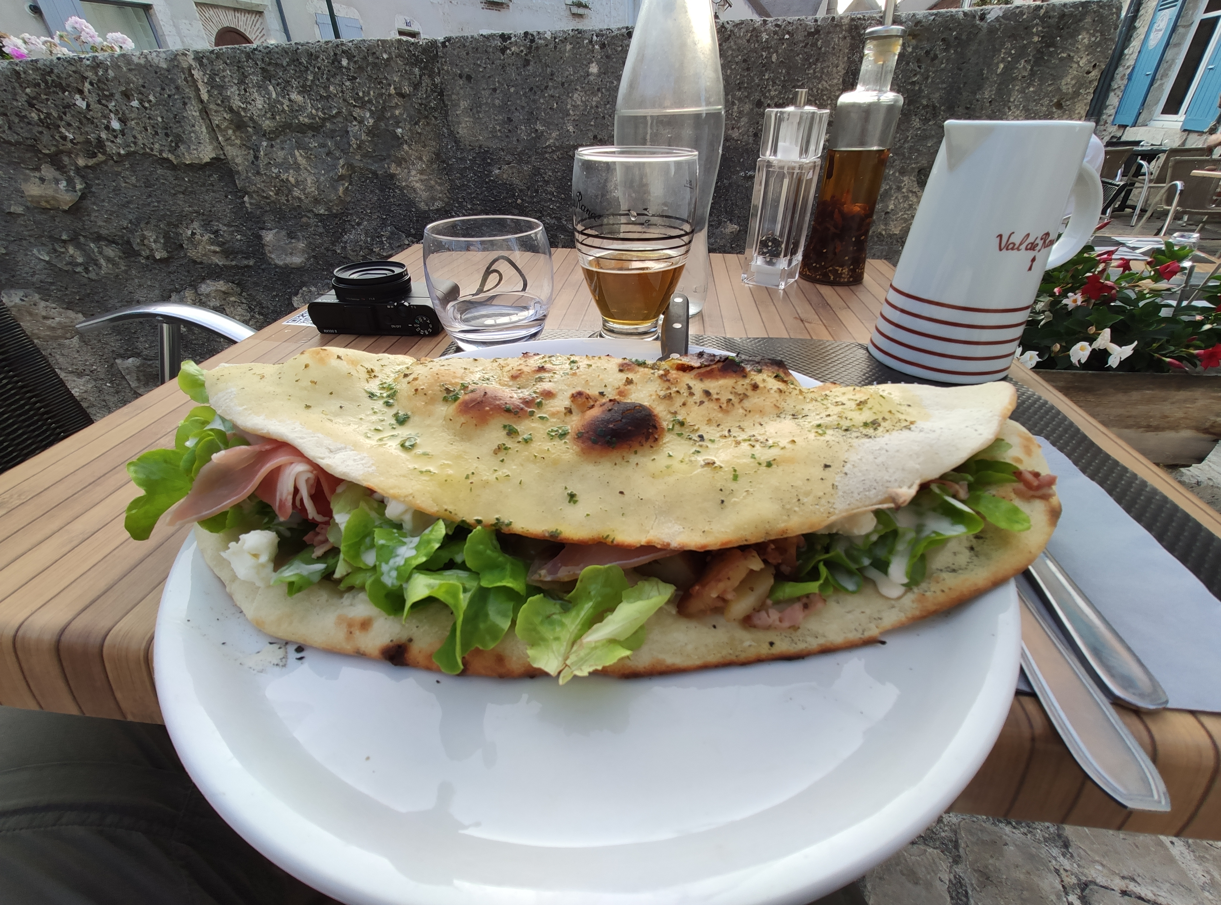 Des galettes, des pizza, des burgers. Bref, du bien roboratif mais plaisant après une journée de marche où on a dépensé nos calories. Les galettes étaient bien servies. Pour les desserts, des crêpes évidemment mais aussi des glaces de fabrication artisanale. Peu d'attente même si l'établissement était presque rempli lors de notre visite. Le petit plus, c'est la belle terrasse le long du Ru, un ruisseau en partie découvert. Paisible même si les voitures passent à proximité.