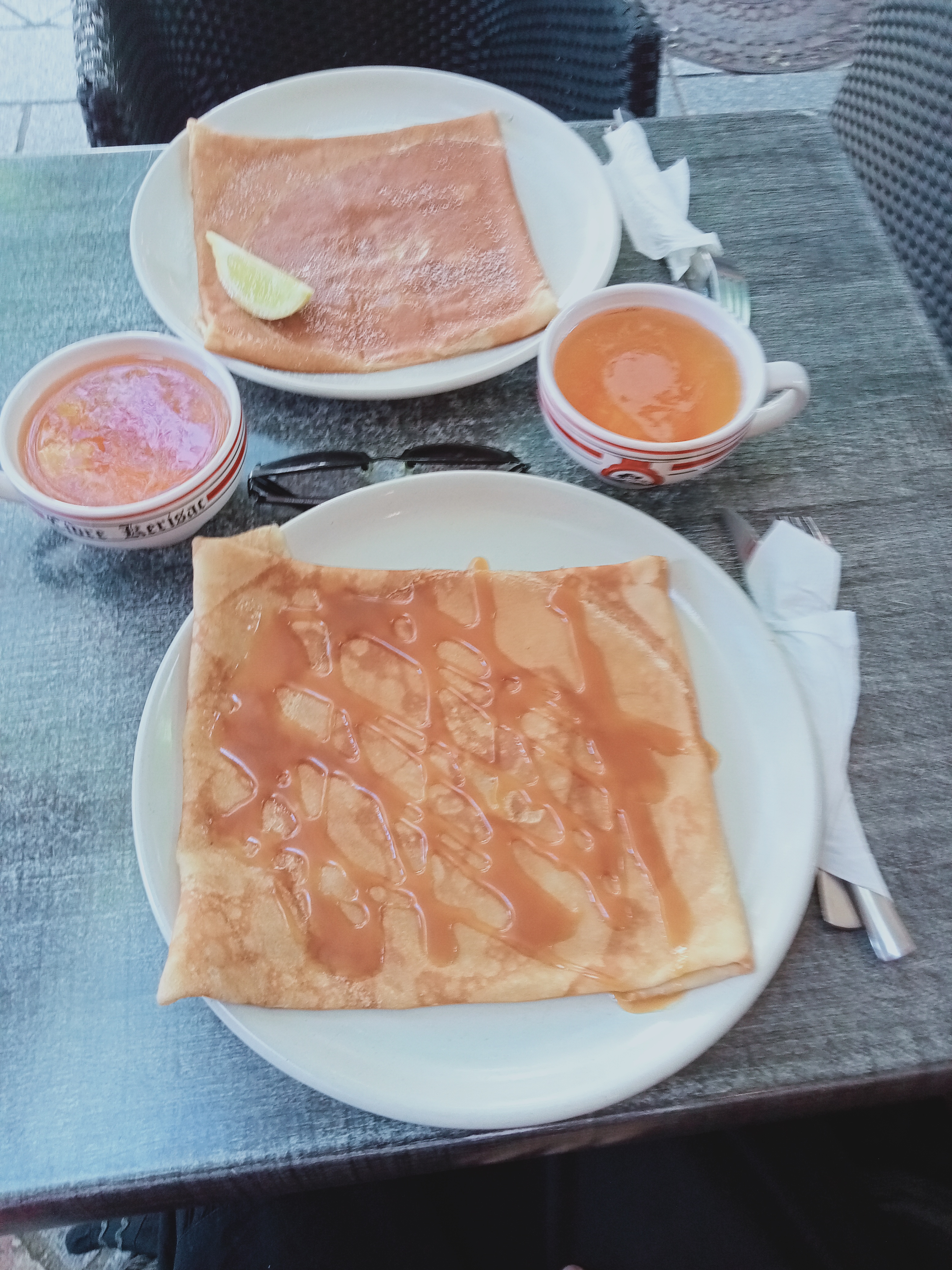 Bien situé, la crêperie n’est pas la meilleure que j’ai faite. Les galettes sont sèches et les garnitures ne sont pas vraiment généreuses. Néanmoins, j’ai passé un bon moment malgré le fait que la fin de service soit longue. Parfait pour manger sur le mousse et se mettre quelque chose dans le ventre, même si d’autres snacks plus abordables se trouvent autours.