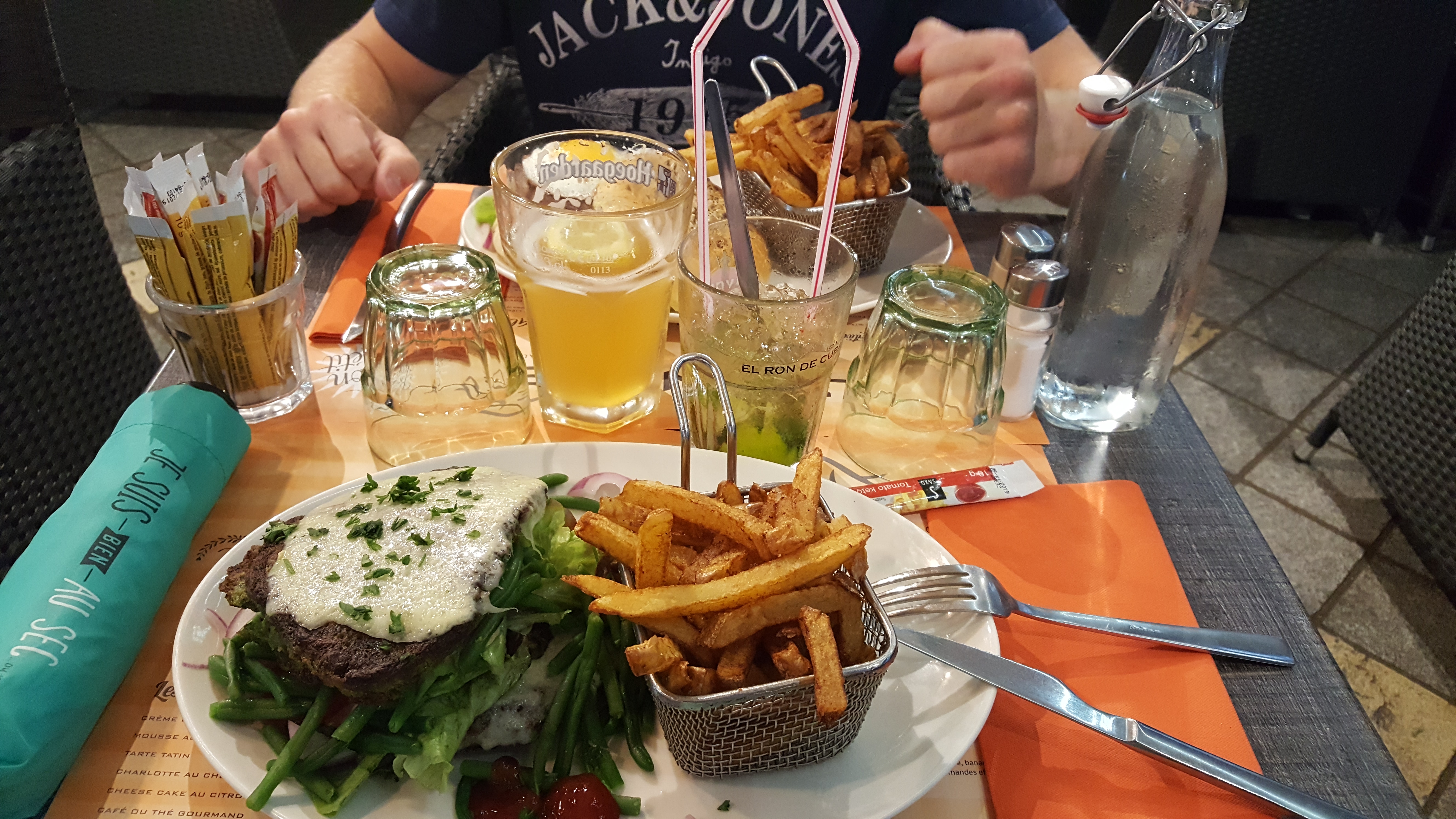 L’entrecôte ( saignante) avec sa sauce bleu était excellente , les moules marinières aussi d’ailleurs, les plats sont copieux et bien garnie. On nous a propos un dessert mais on était bien calé pour la suite , sûrement une prochaine fois