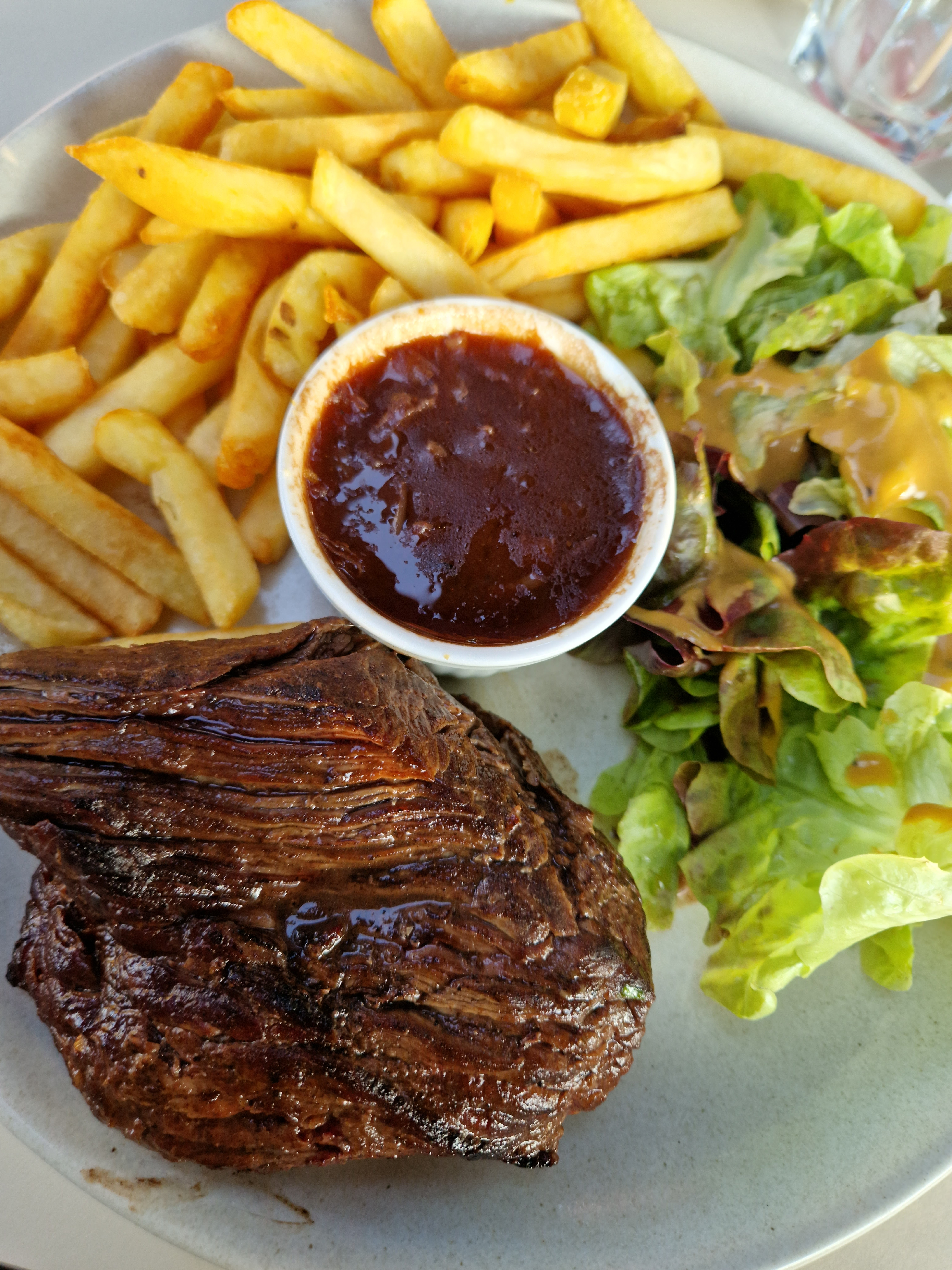 J’ai commandé une entrecôte elle est arrivée plein de gras (20 euro le plat)des frites pas salé obligé de demander du pain on nous a ramené 2 morceau de pain pour 6 l eau tiède les moules les sauces sont coupés a l eau du coup pas vraiment de goût la quantité et bonne les désert catastrophique crêpes tatin une boule de glace un pauvre malheureux morceau de pomme le caramel faut le chercher la crêpe même pas maison vraiment dessus du début à la fin